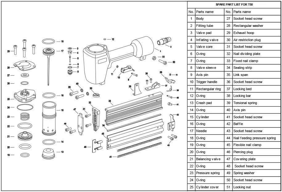 Yugong T50S1 공압식 못총, 강력하고 내구성이 뛰어난 장식용 목공용 스틸 못총, 전기공용 에어 못총 도매