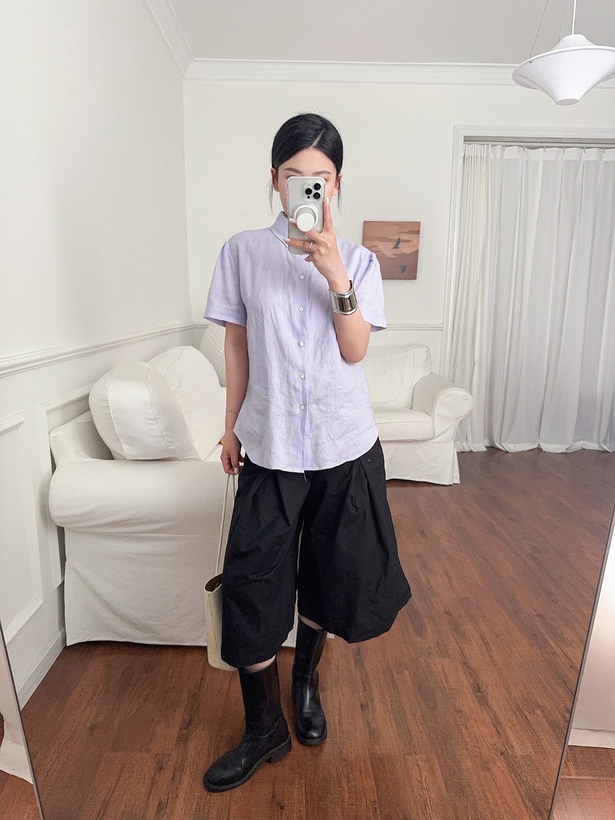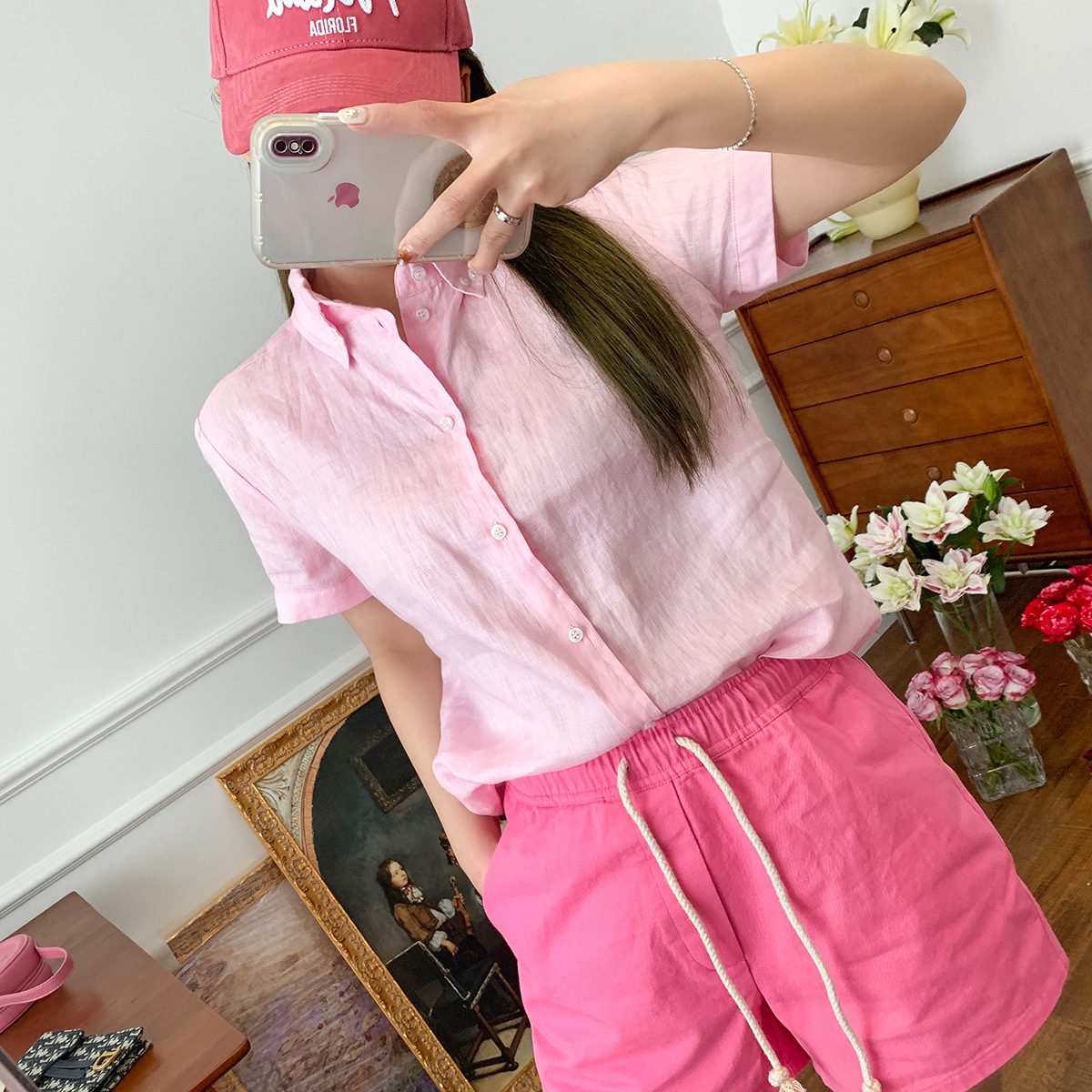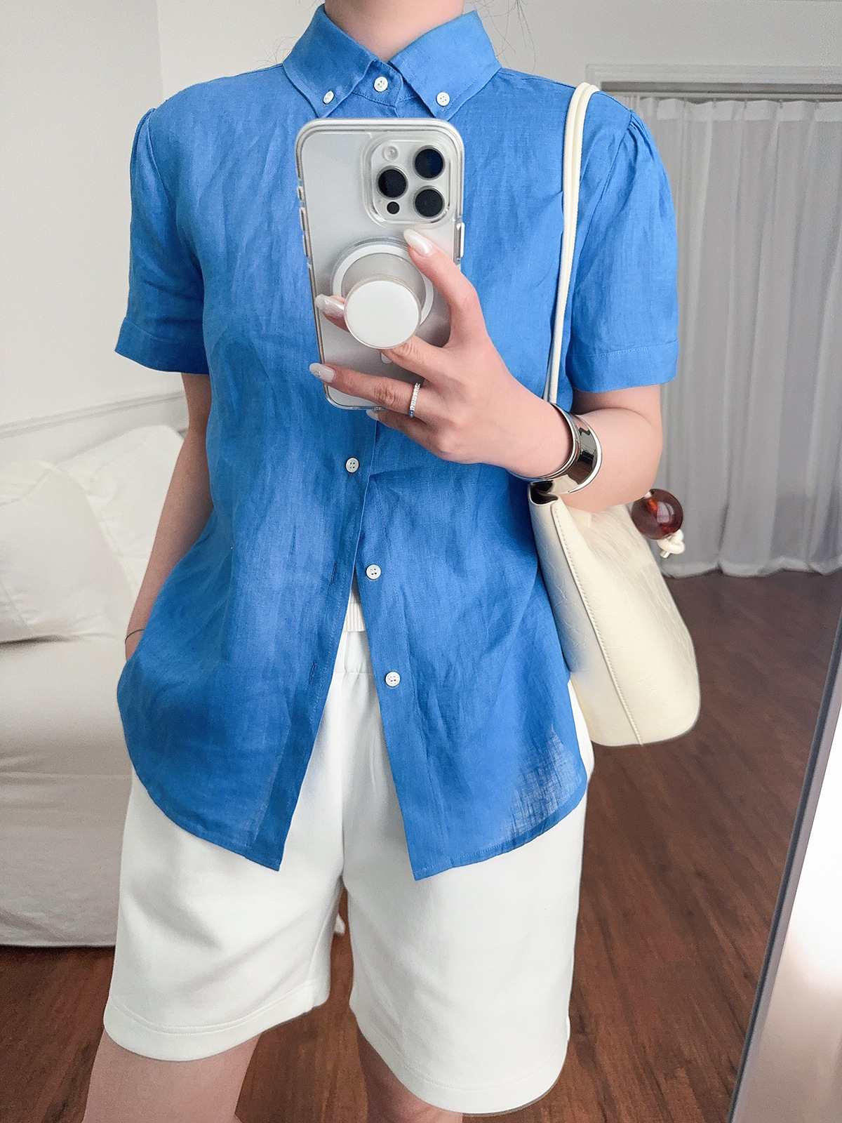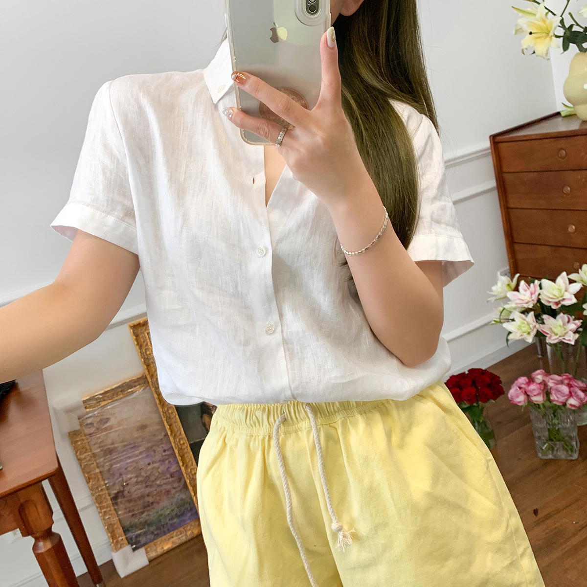 26 여름 라프 워리어스 자수 리넨 반팔 셔츠 얇은 캐주얼 다용도 패셔너블 여성 셔츠 인터넷 인기 스타일스토어 가기