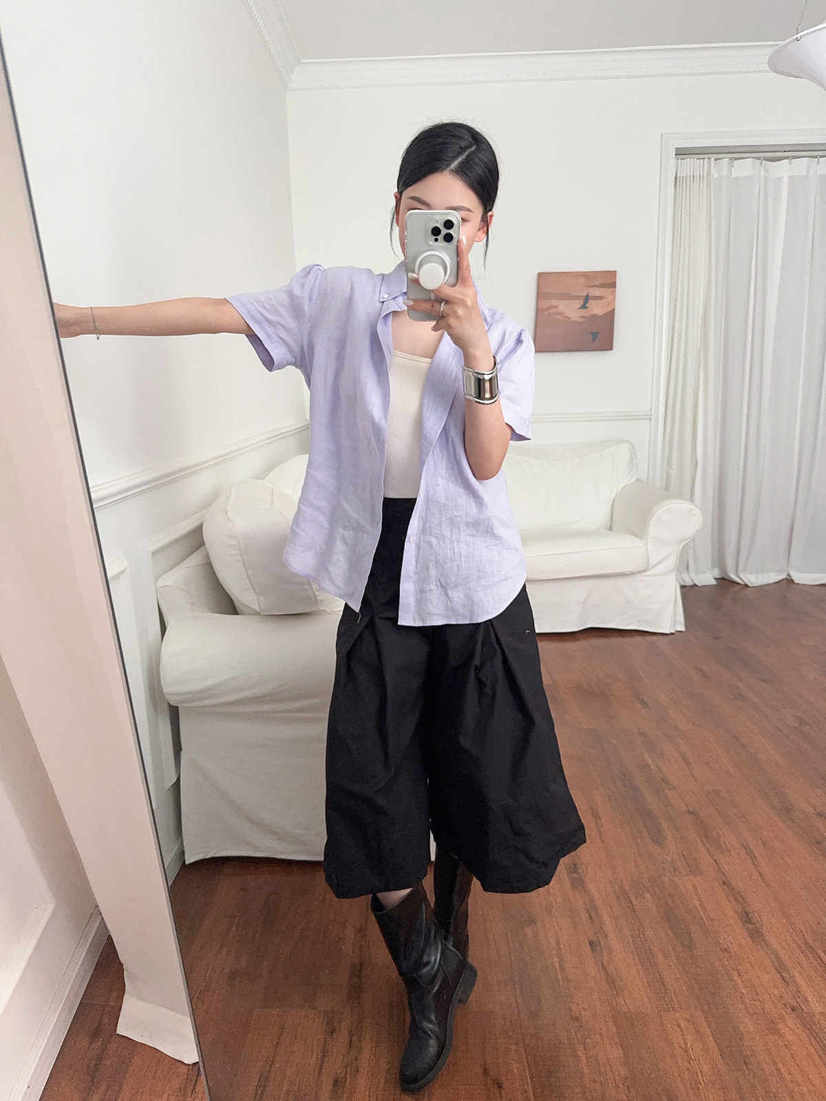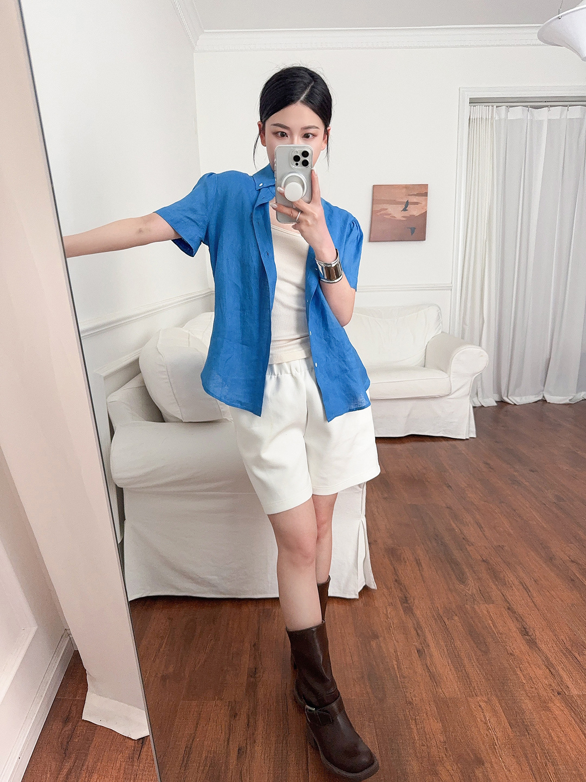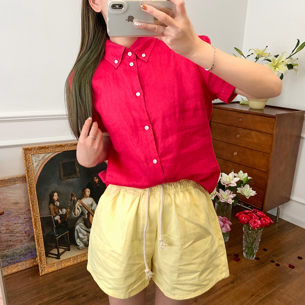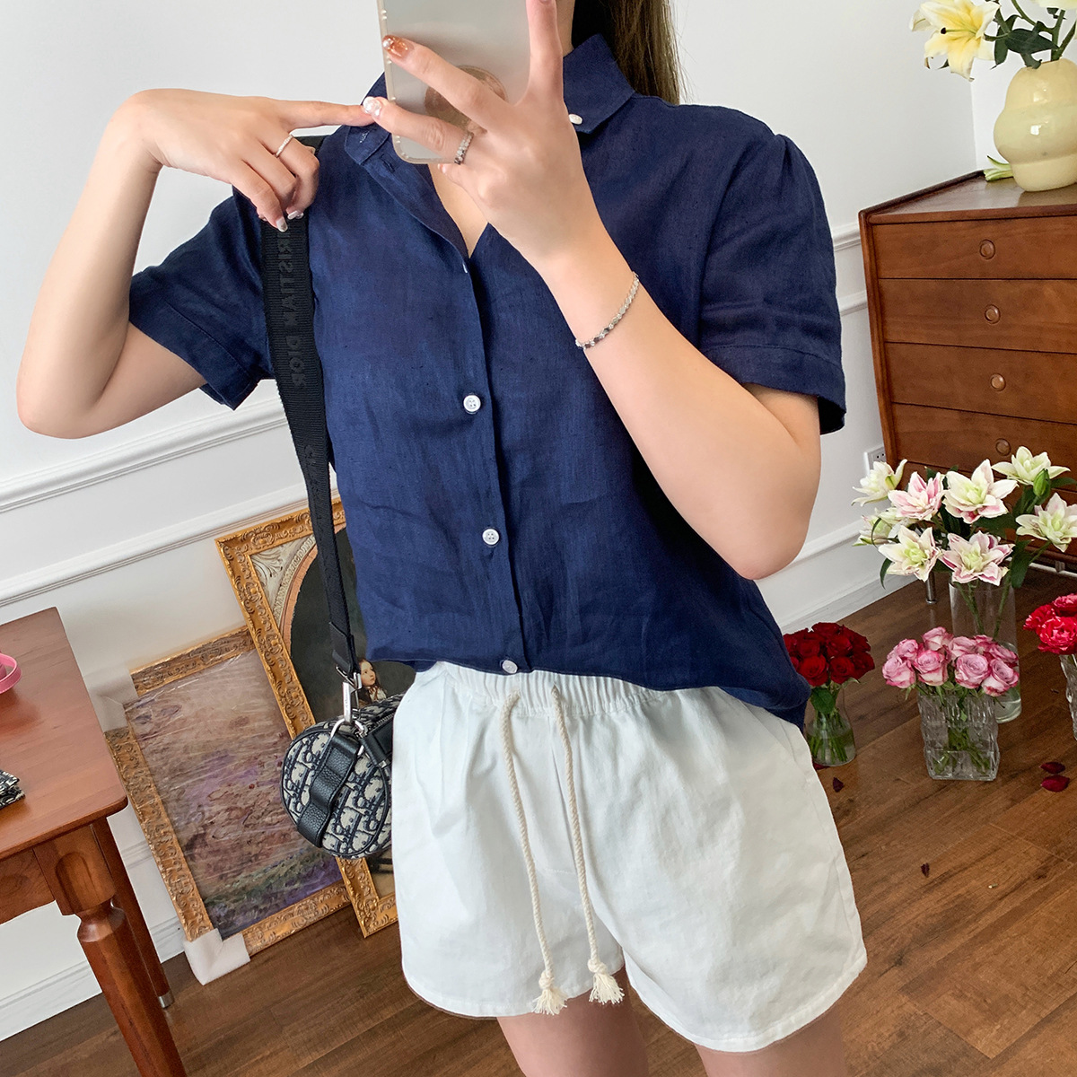 26 여름 라프 워리어스 자수 리넨 반팔 셔츠 얇은 캐주얼 다용도 패셔너블 여성 셔츠 인터넷 인기 스타일스토어 가기