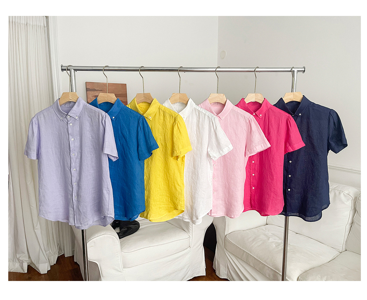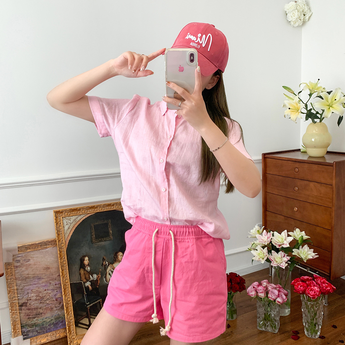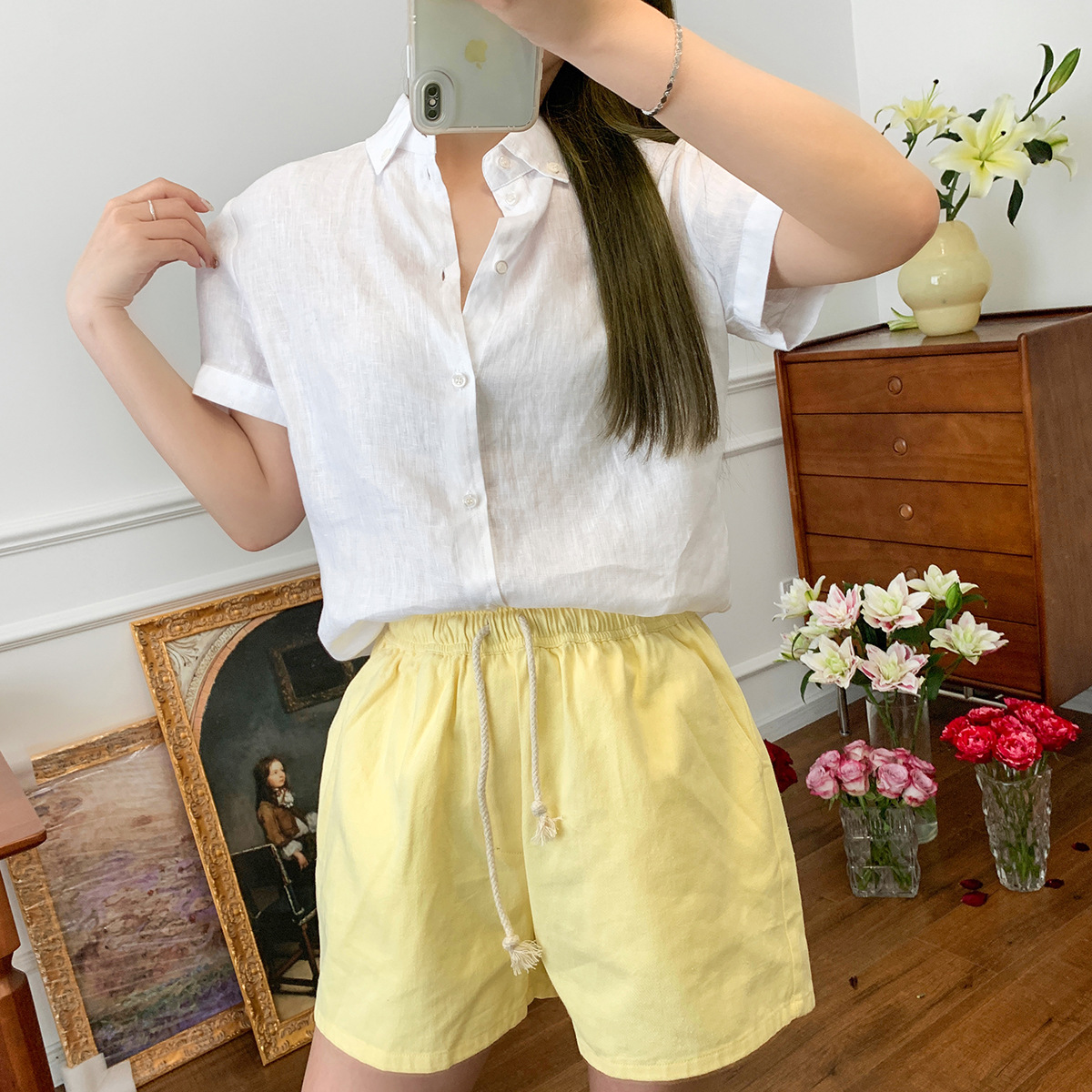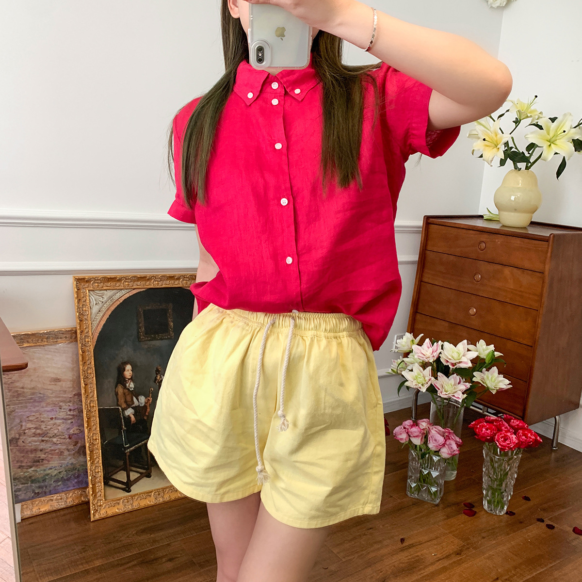 26 여름 라프 워리어스 자수 리넨 반팔 셔츠 얇은 캐주얼 다용도 패셔너블 여성 셔츠 인터넷 인기 스타일스토어 가기