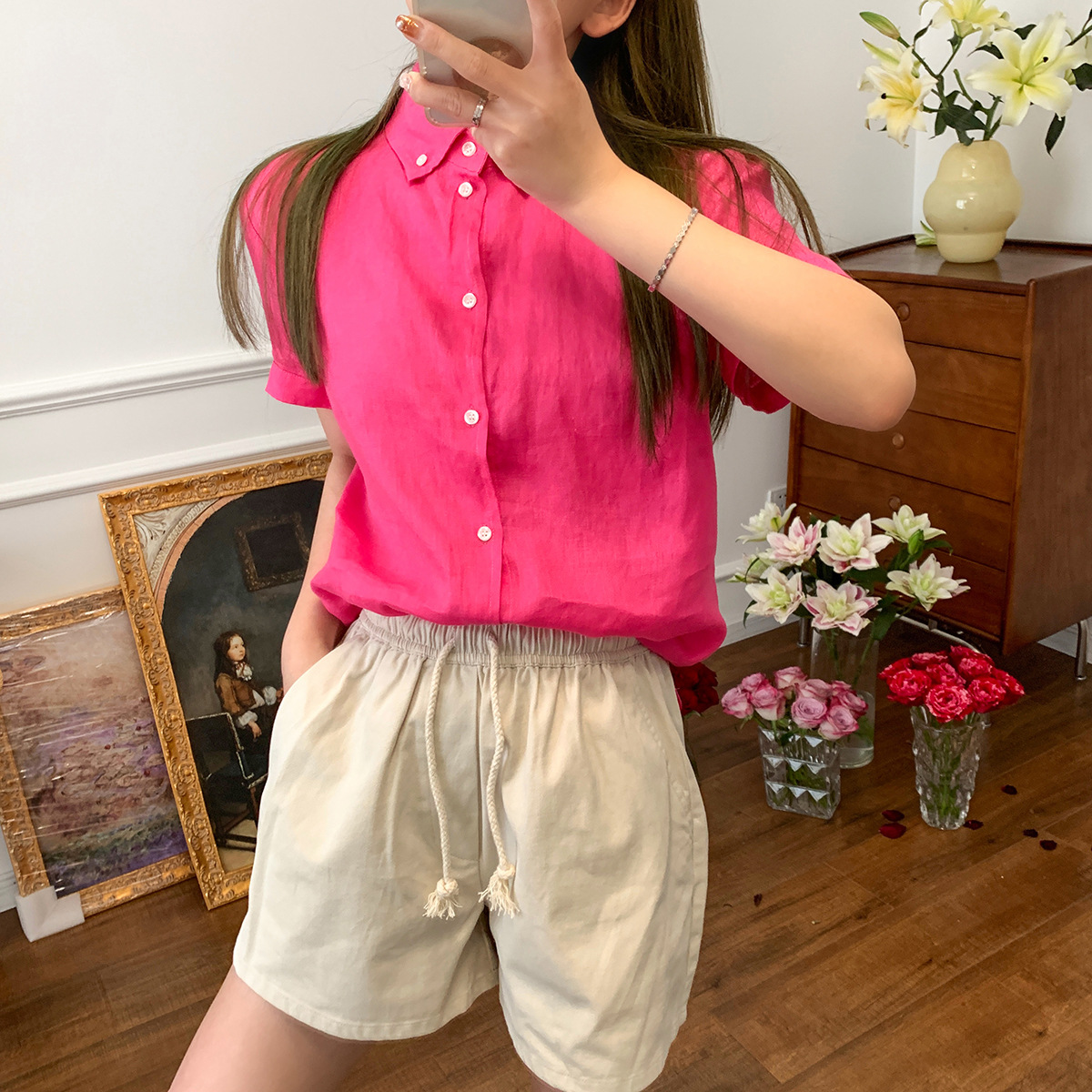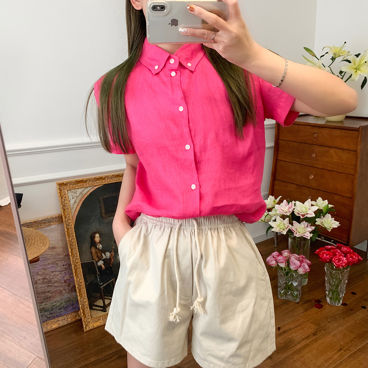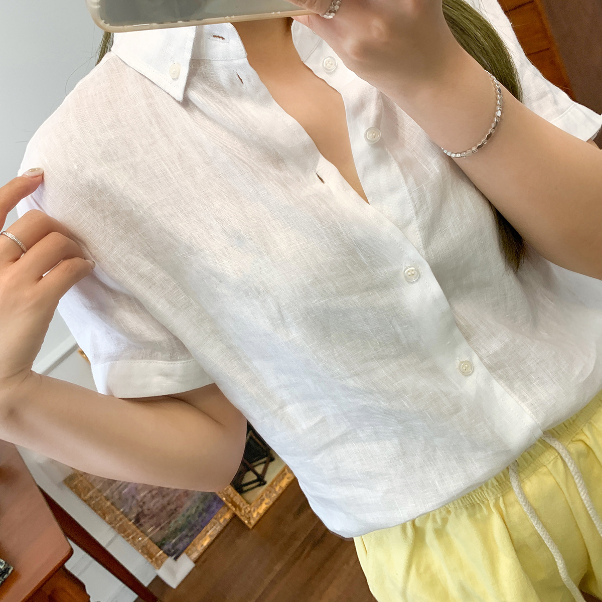 26 여름 라프 워리어스 자수 리넨 반팔 셔츠 얇은 캐주얼 다용도 패셔너블 여성 셔츠 인터넷 인기 스타일