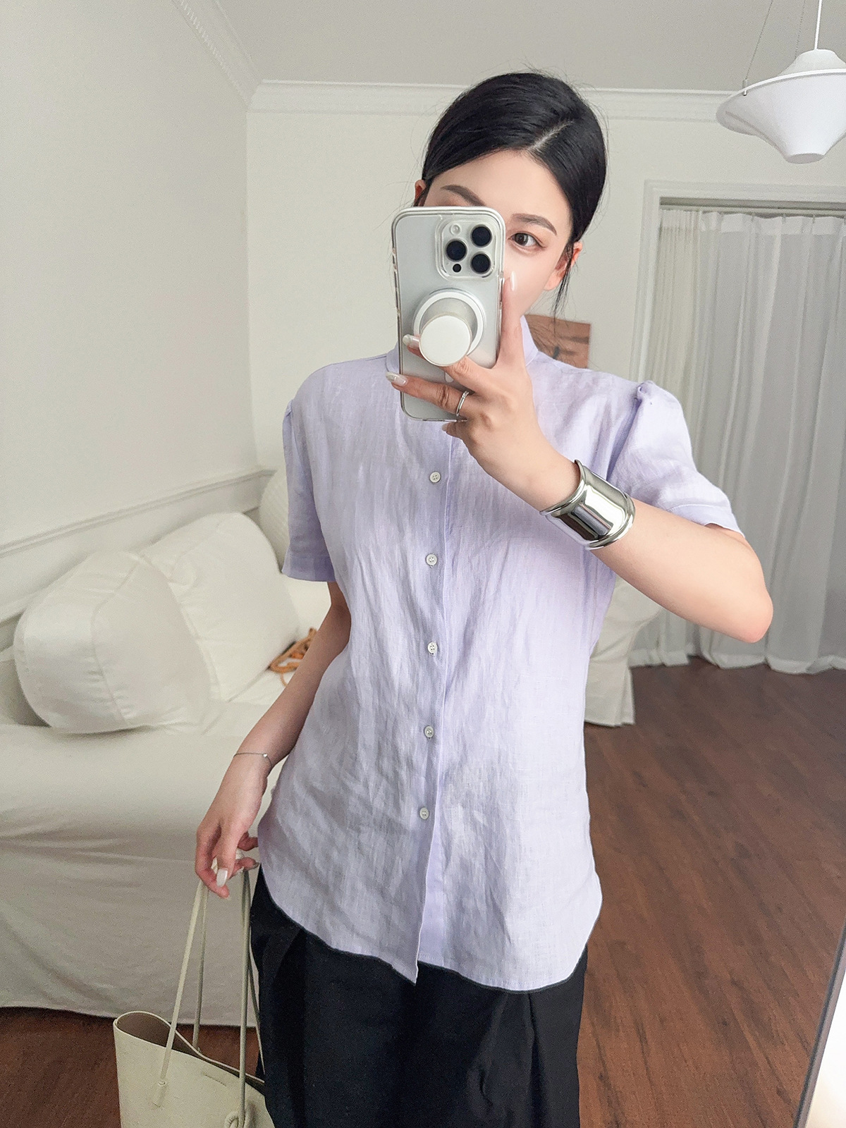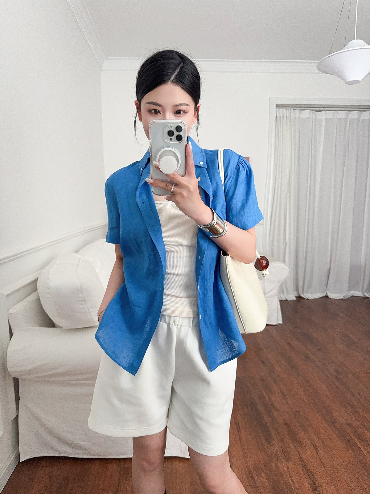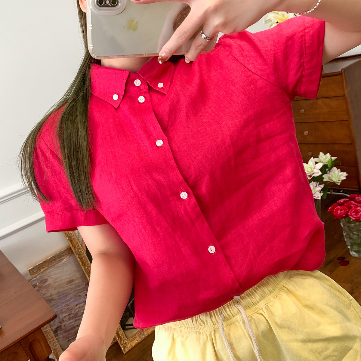 26 여름 라프 워리어스 자수 리넨 반팔 셔츠 얇은 캐주얼 다용도 패셔너블 여성 셔츠 인터넷 인기 스타일