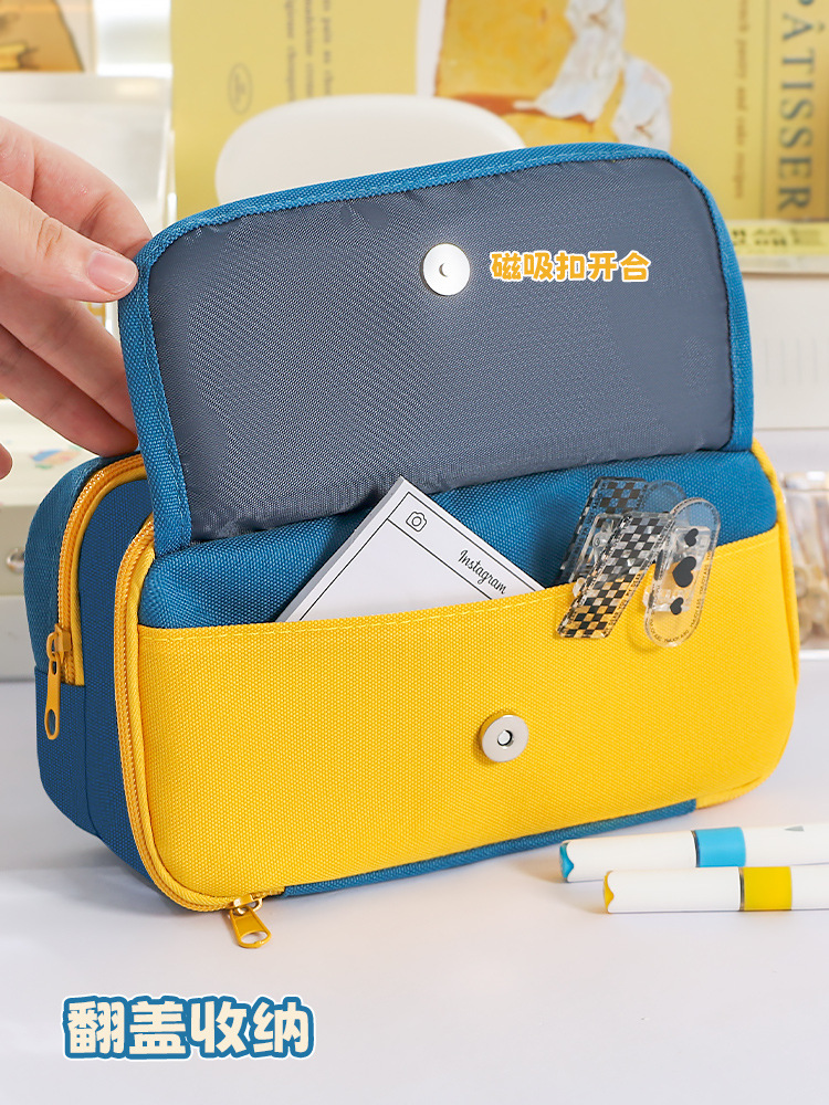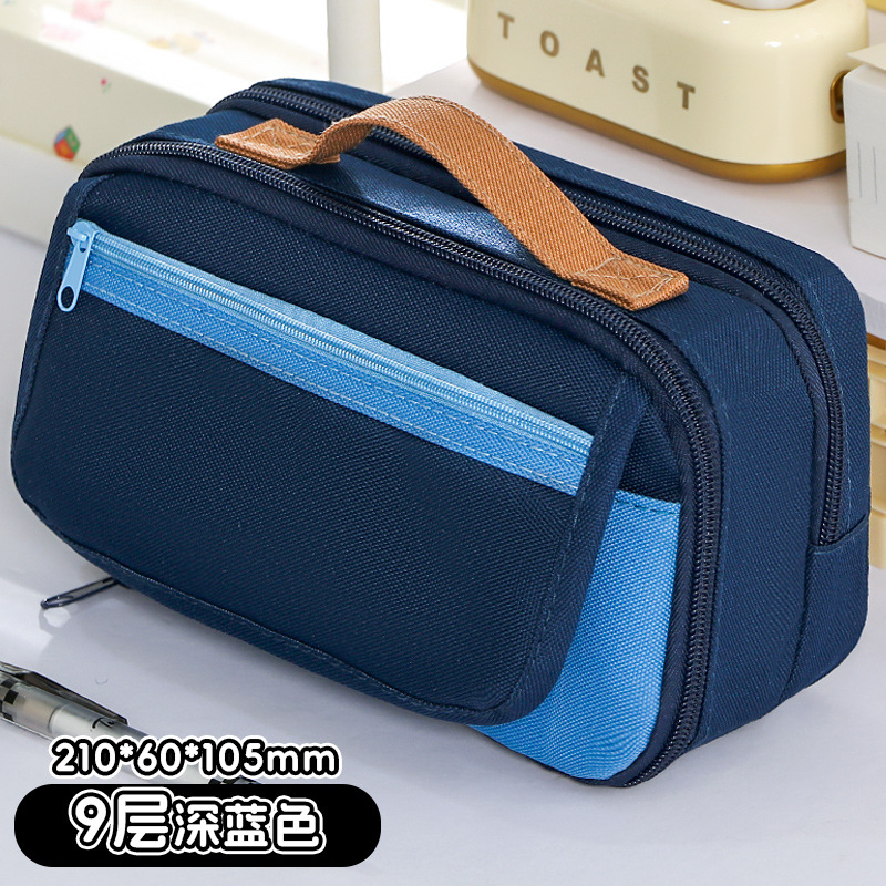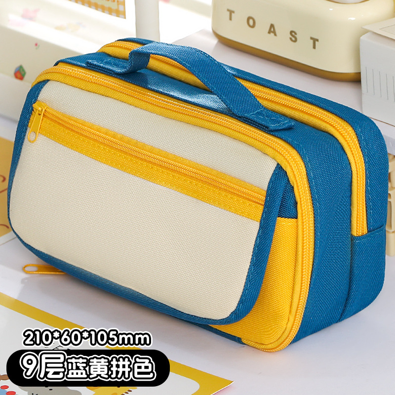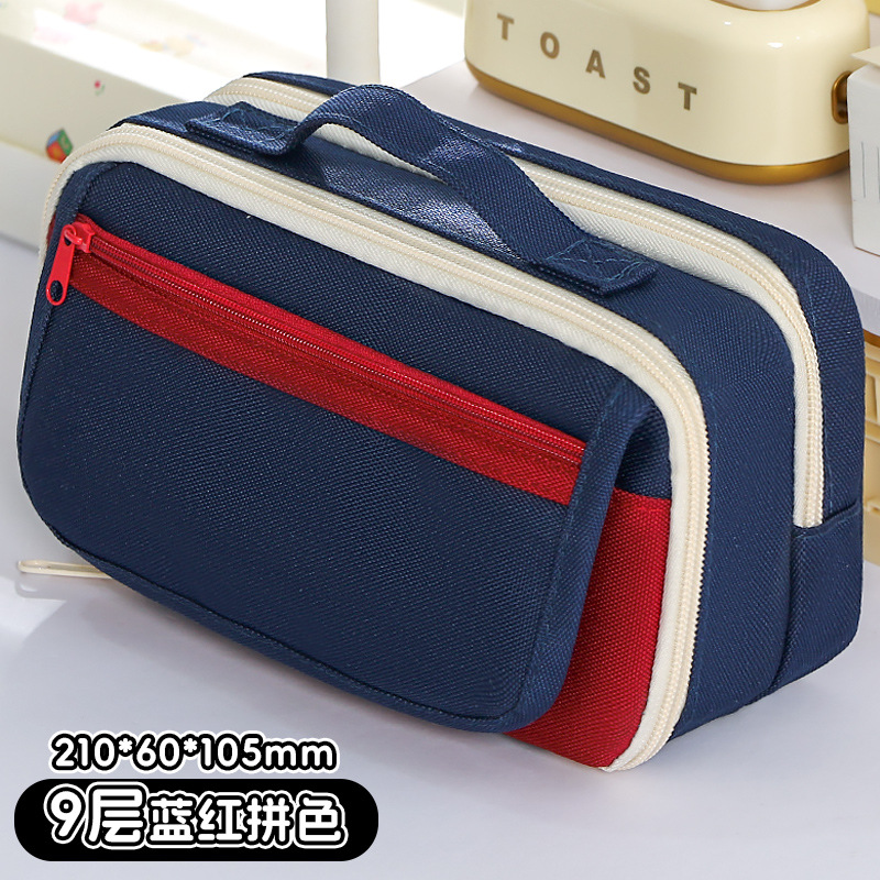 휴대용 컬러 매칭 복고풍 9층 초대형 용량 간단하고 고급스러운 문구 상자 학생 대용량 문구 보관 가방