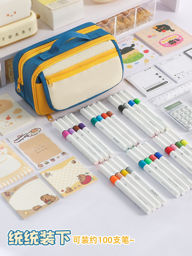 휴대용 컬러 매칭 복고풍 9층 초대형 용량 간단하고 고급스러운 문구 상자 학생 대용량 문구 보관 가방스토어 가기