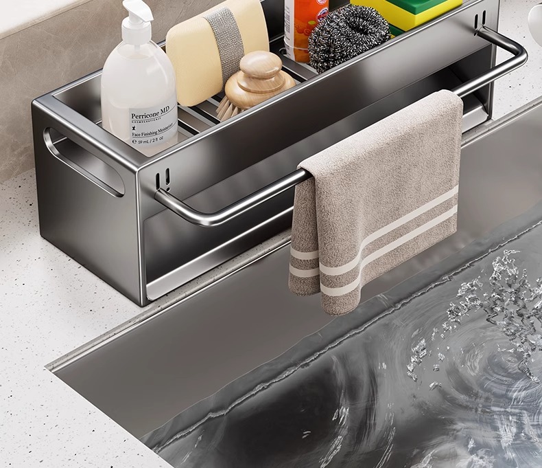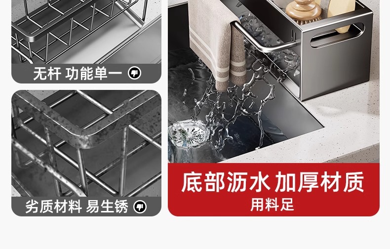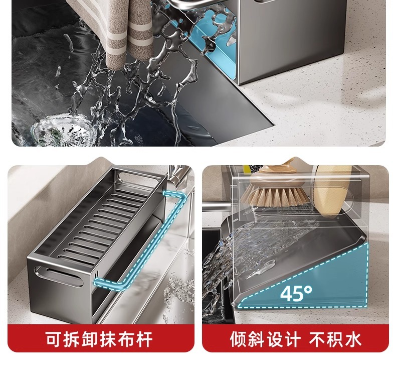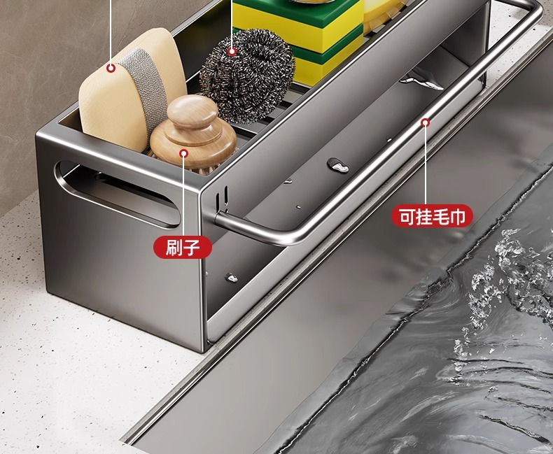 주방 배수구, 수도꼭지 수납선반, 걸레, 물통, 싱크대 옆 다기능 신형 수납용품