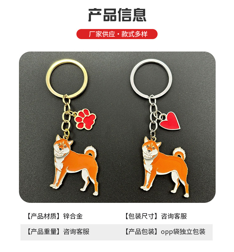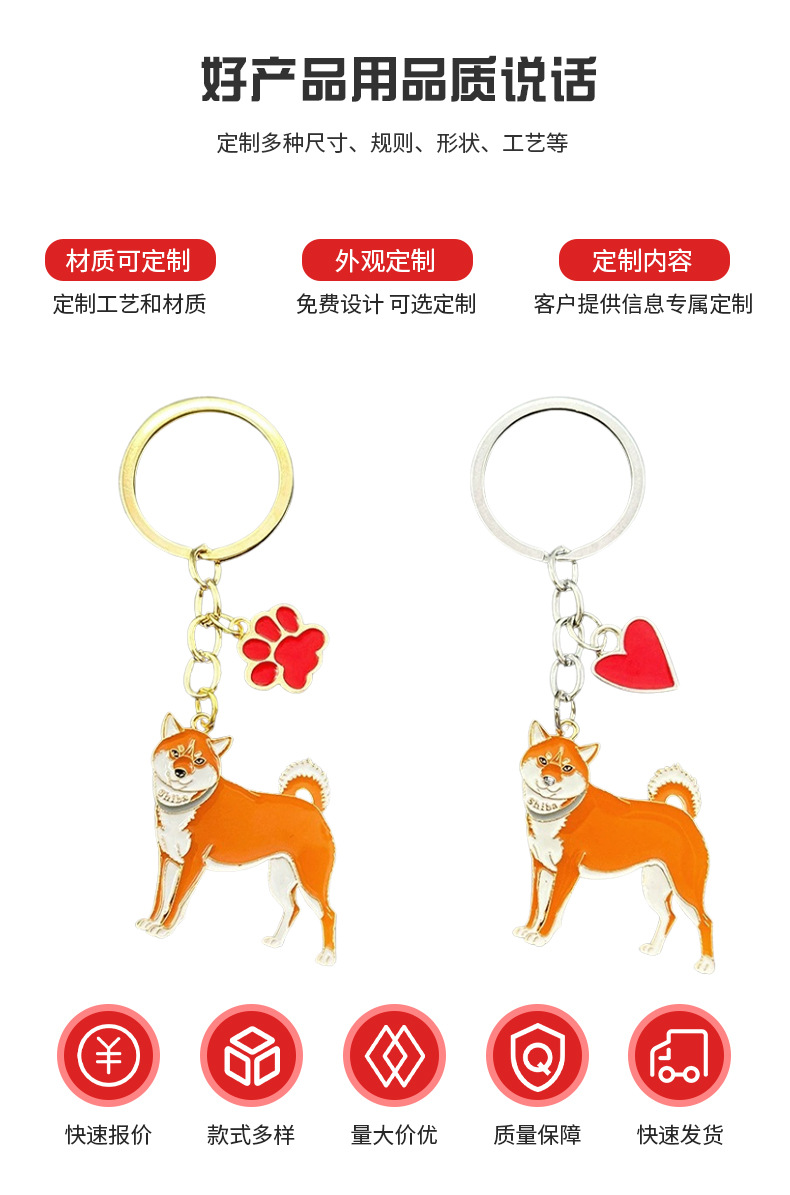 새로운 귀여운 만화 차이 개 키 체인 펜던트 패션 수하물 펜던트 애완 동물 펜던트 개인화 된 합금 작은 선물