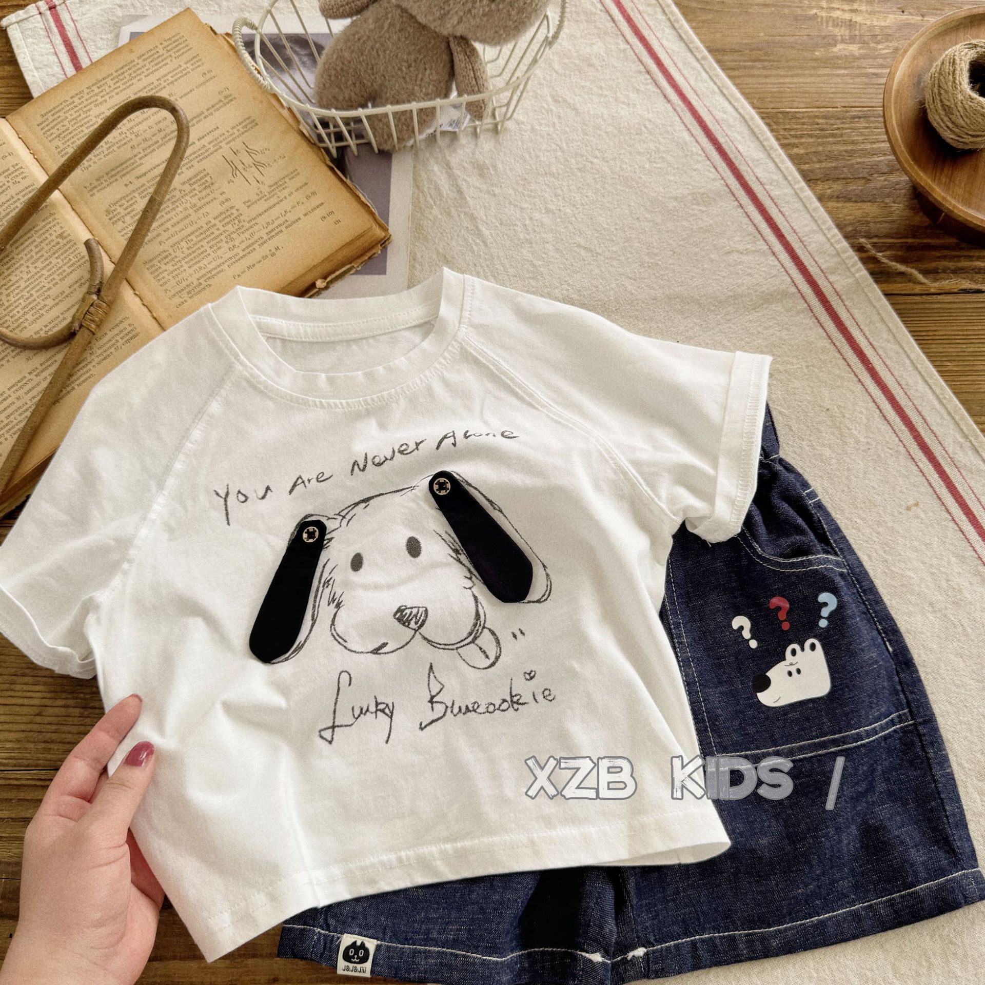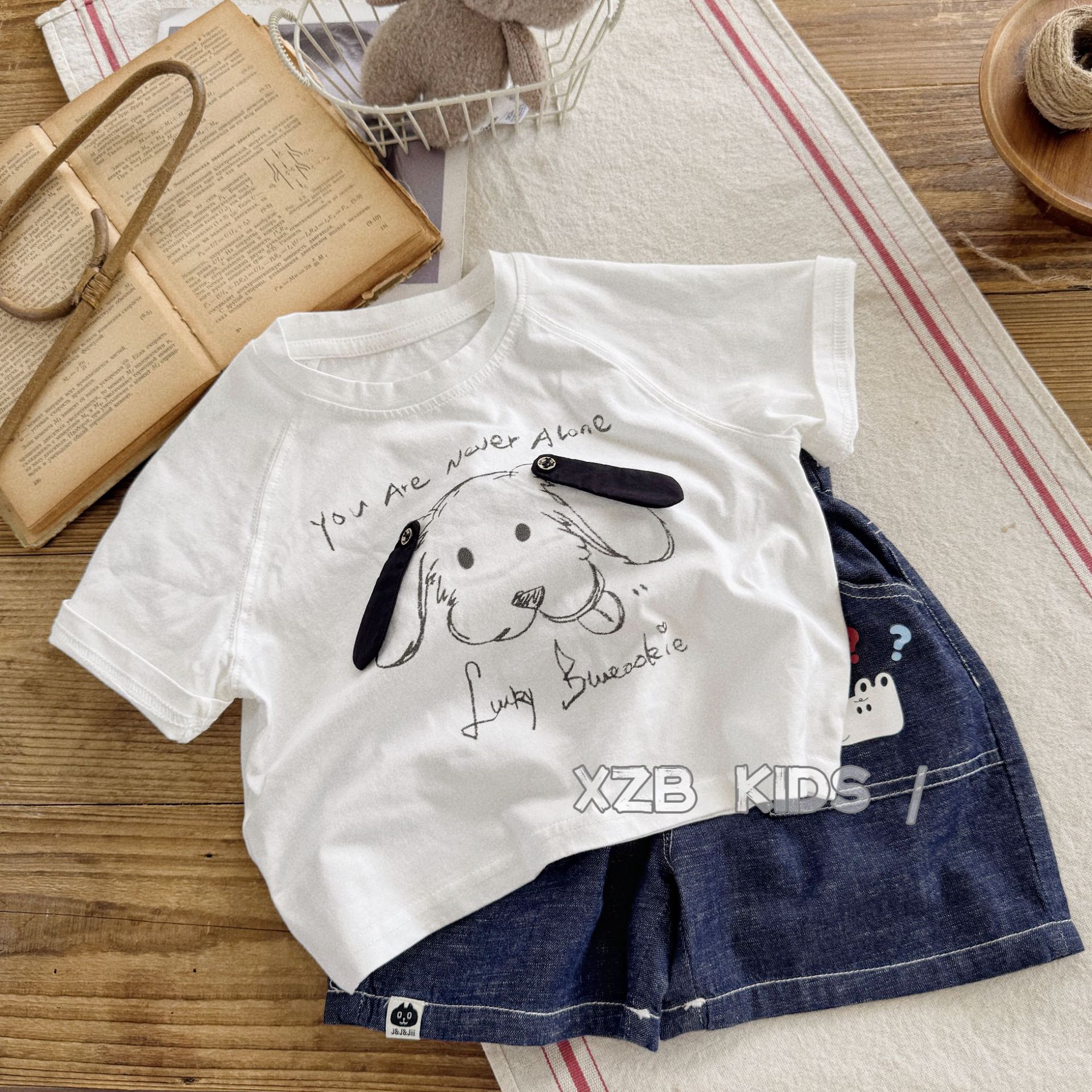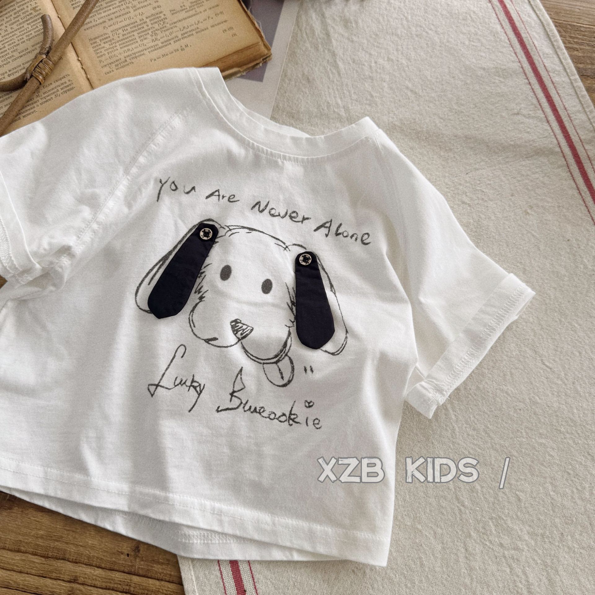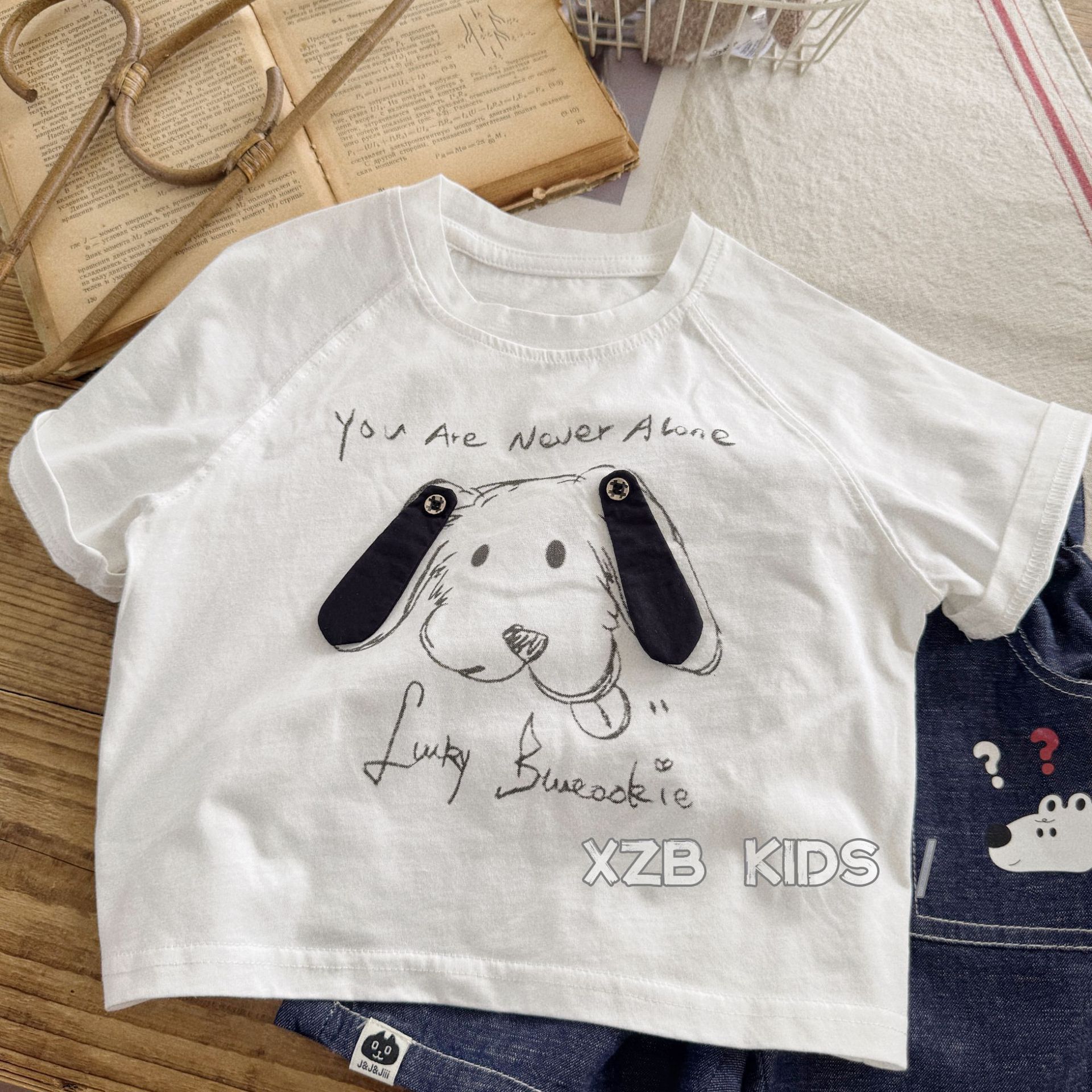 입체 강아지 ~ 소년 여름 얇은 반팔 티셔츠 만화 귀여운 소녀 흰색 면 반팔 아기 여름 옷