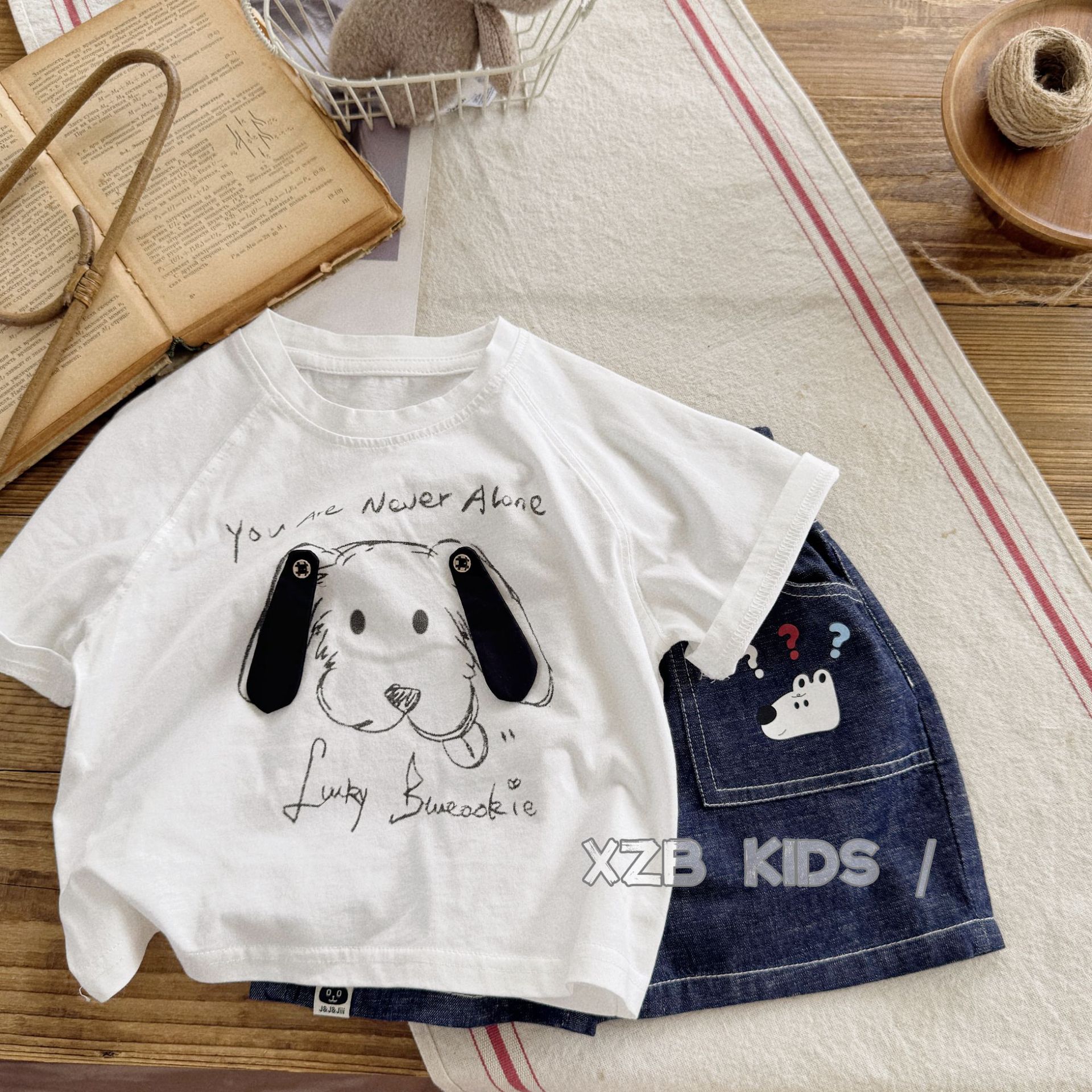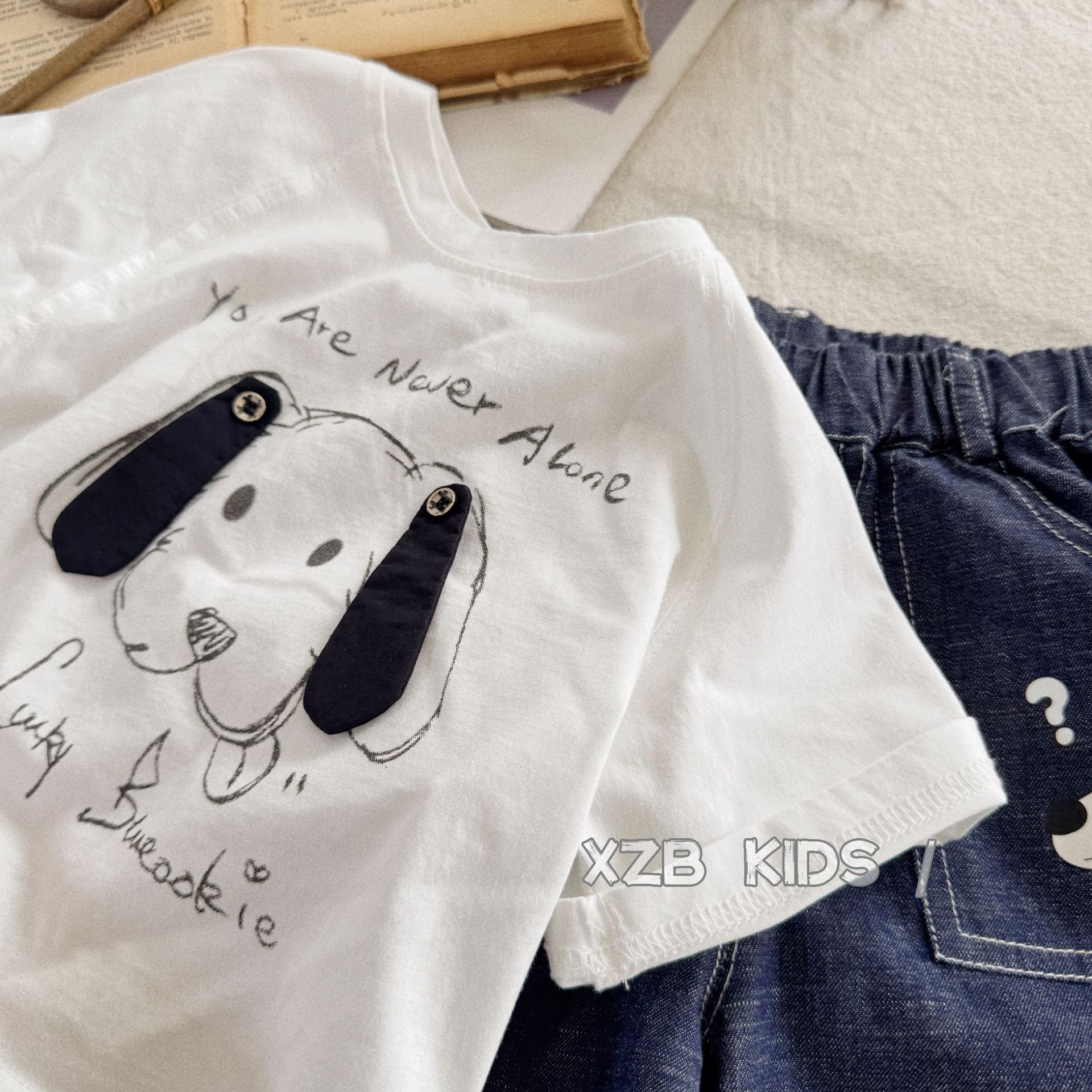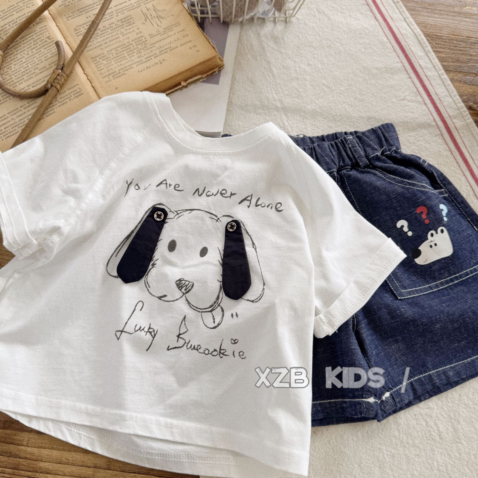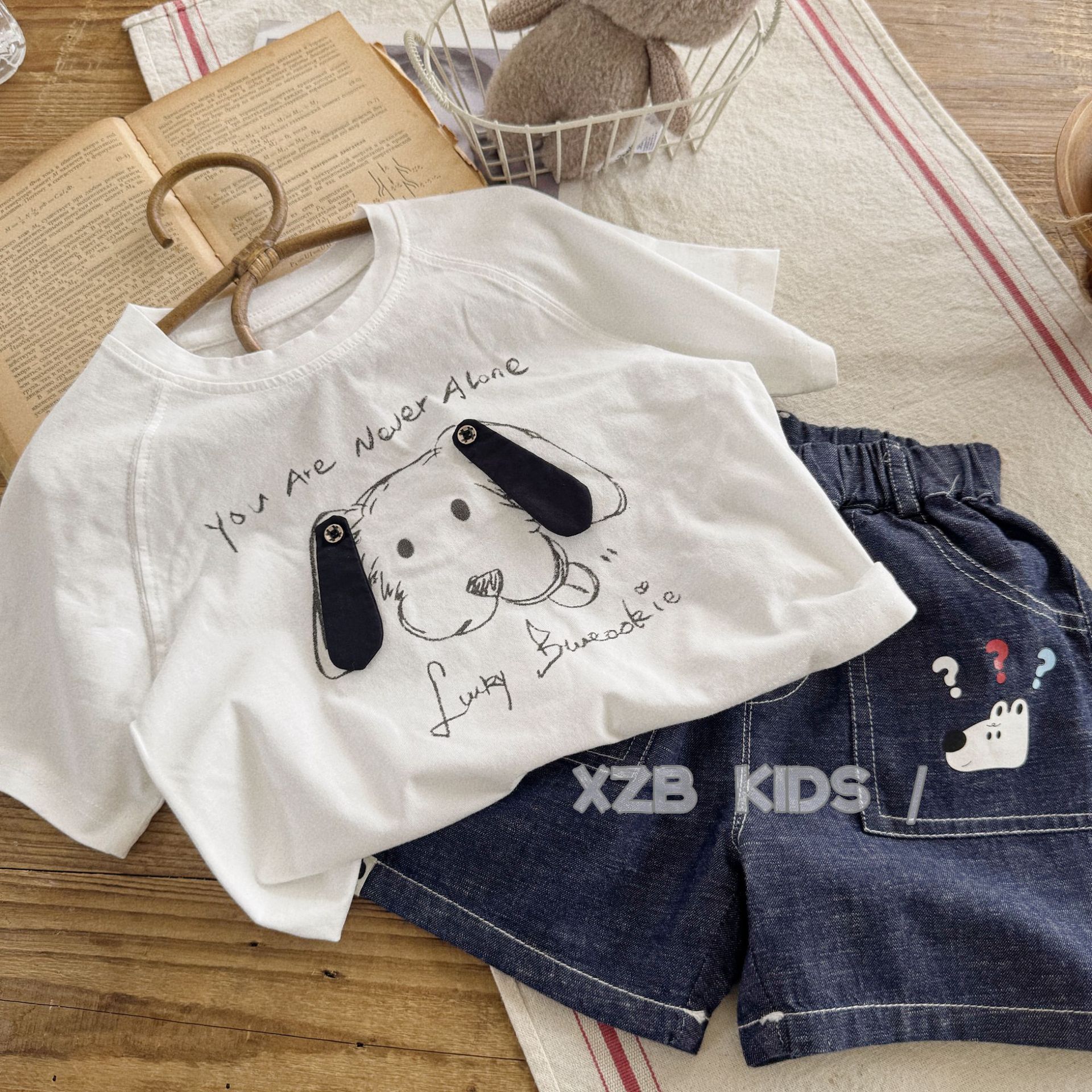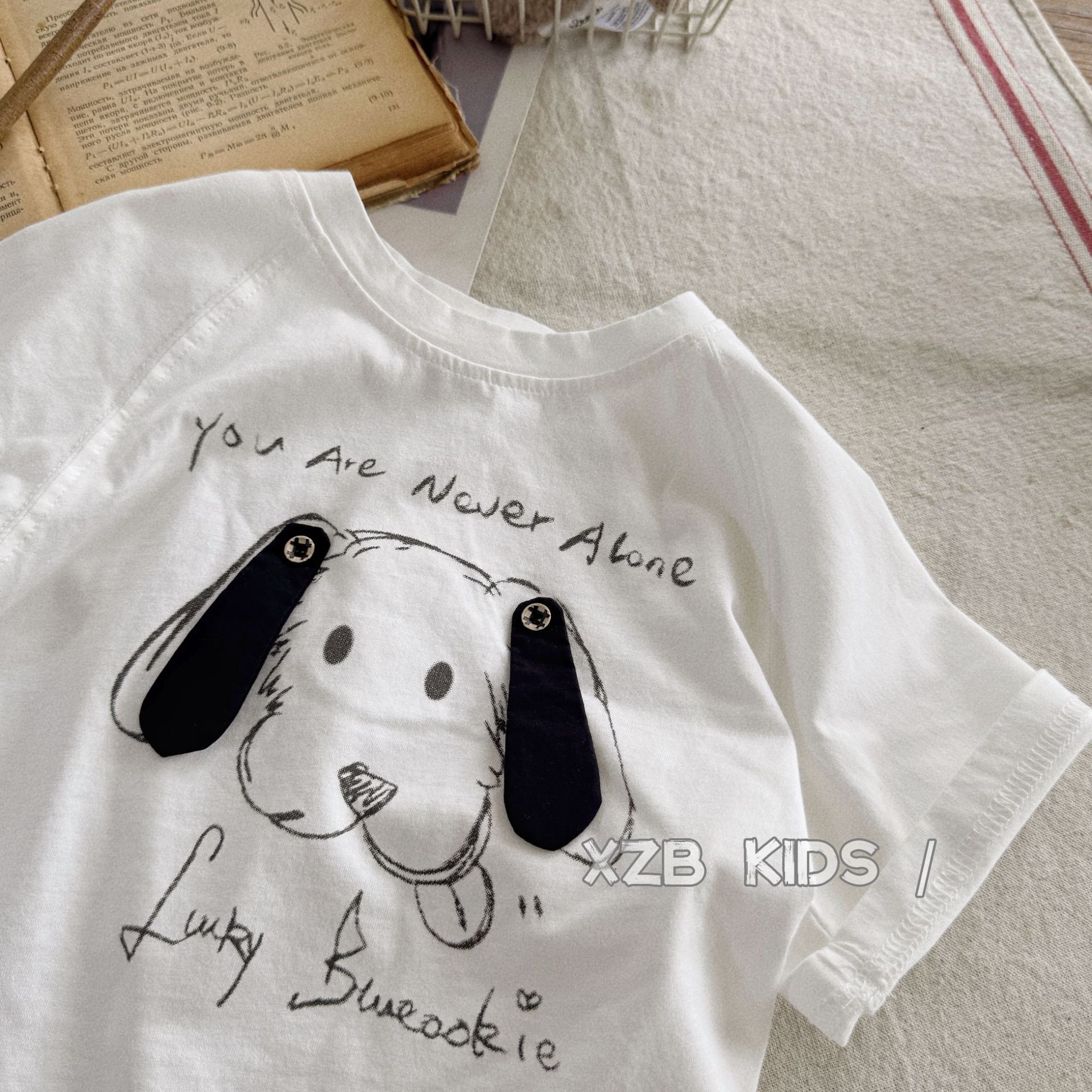 입체 강아지 ~ 소년 여름 얇은 반팔 티셔츠 만화 귀여운 소녀 흰색 면 반팔 아기 여름 옷