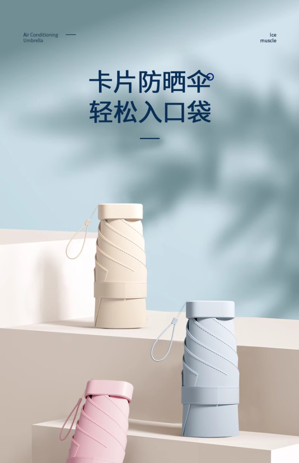 • 콰이어트 블루 + 보관함 [카드우산 컴팩트 휴대용 UPF50 + 프로페셔널 자외선 차단]