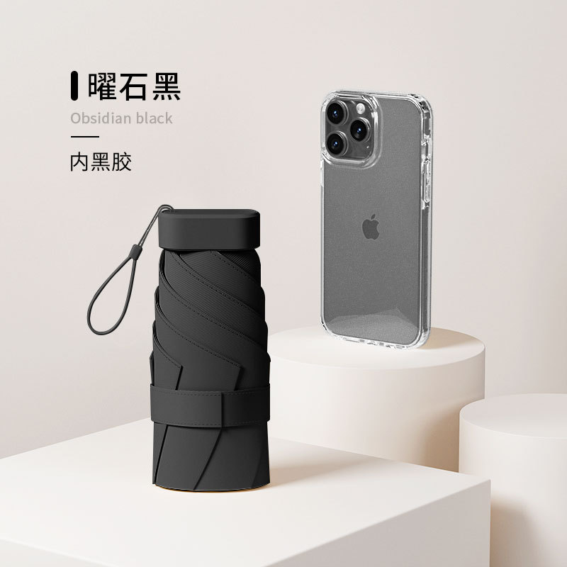 • 옵시디언 블랙 + 보관함 [카드우산 컴팩트 휴대용 UPF50 + 프로페셔널 자외선 차단]