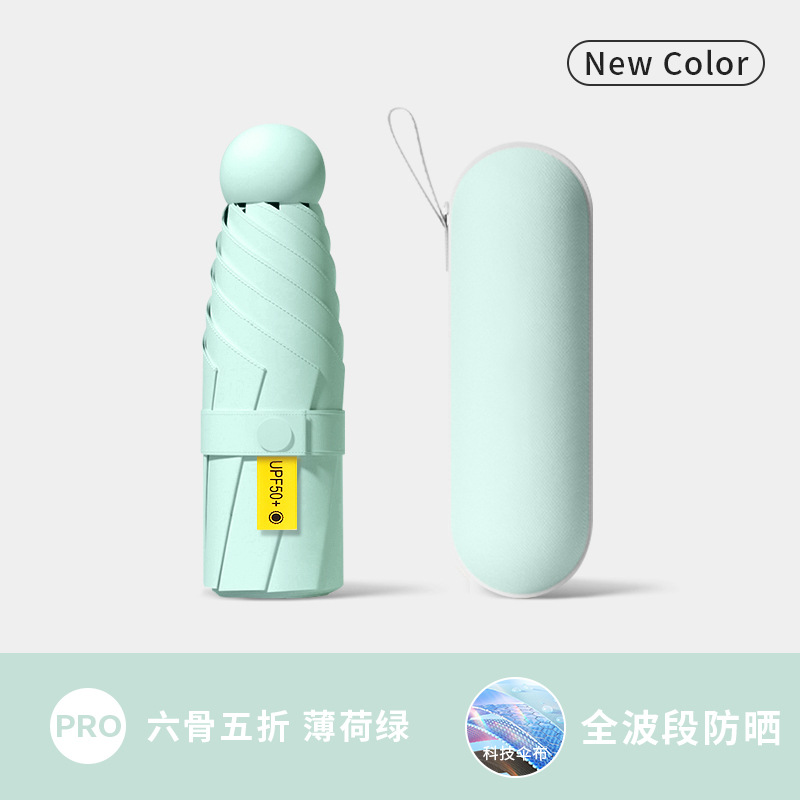• 민트 그린 [우산 50% off 캡슐, 컴팩트하고 휴대 가능, UPF50+ 전문 자외선 차단] 무료 보관함