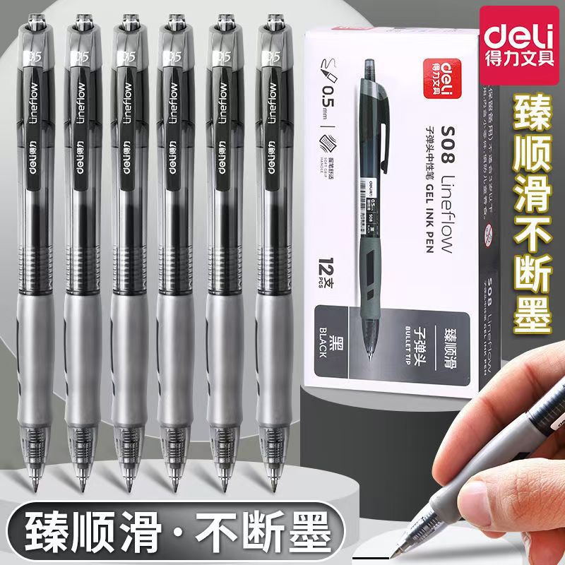 델리 푸쉬버튼 젤펜, 매우 부드러운 필기감, 학생 시험 연습용 0.5mm 검정색 워터펜, 사무용 서명펜, 문구류스토어 가기