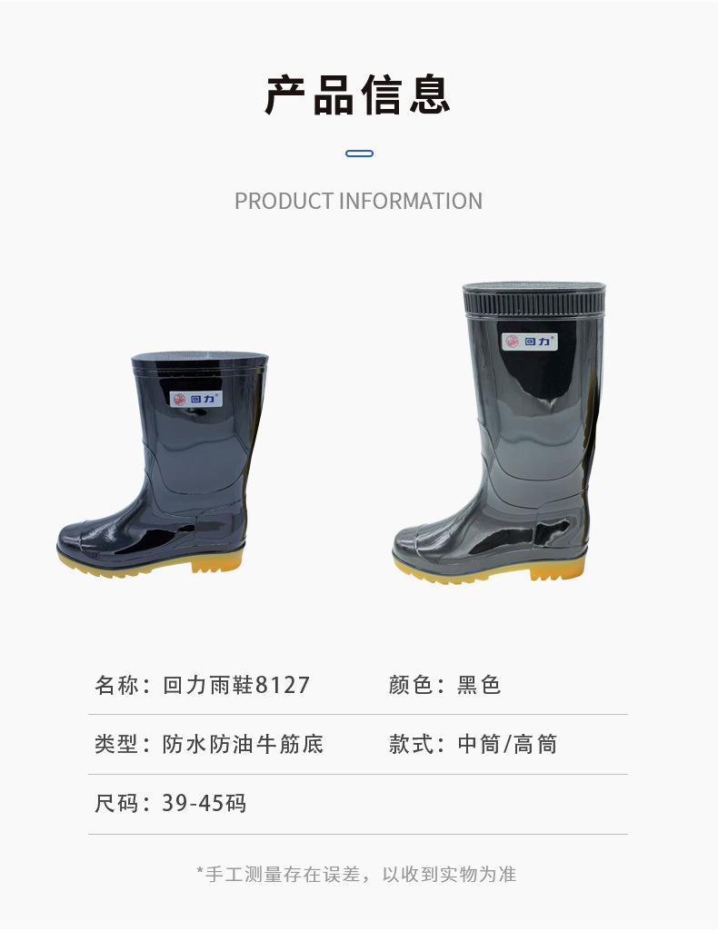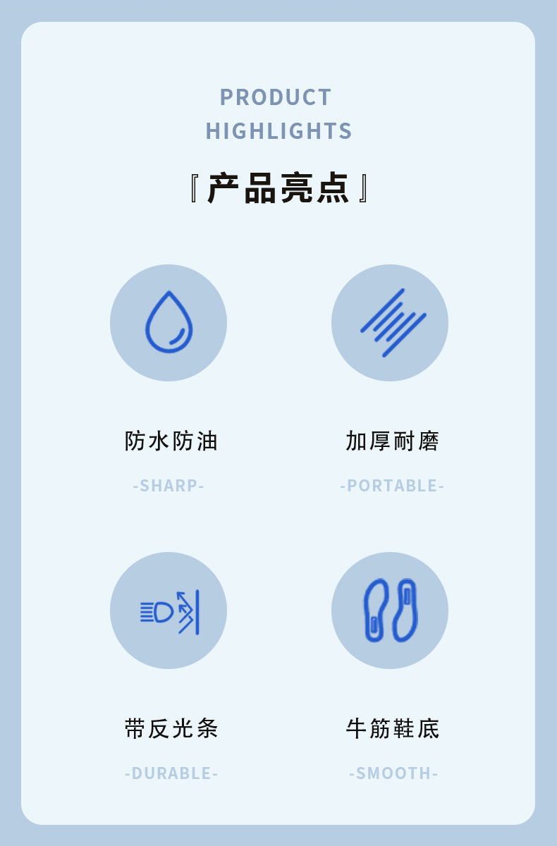 반사 스트립이 있는 8127 레인부츠, 방수 및 방유 워터슈즈, 두꺼운 힘줄 밑창, 내마모성 및 미끄럼 방지 레인부츠
