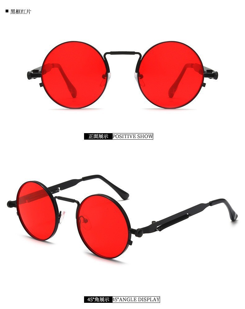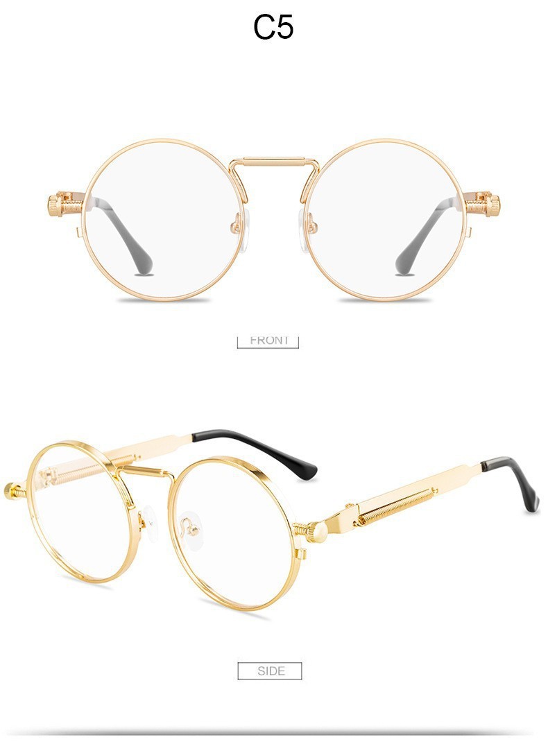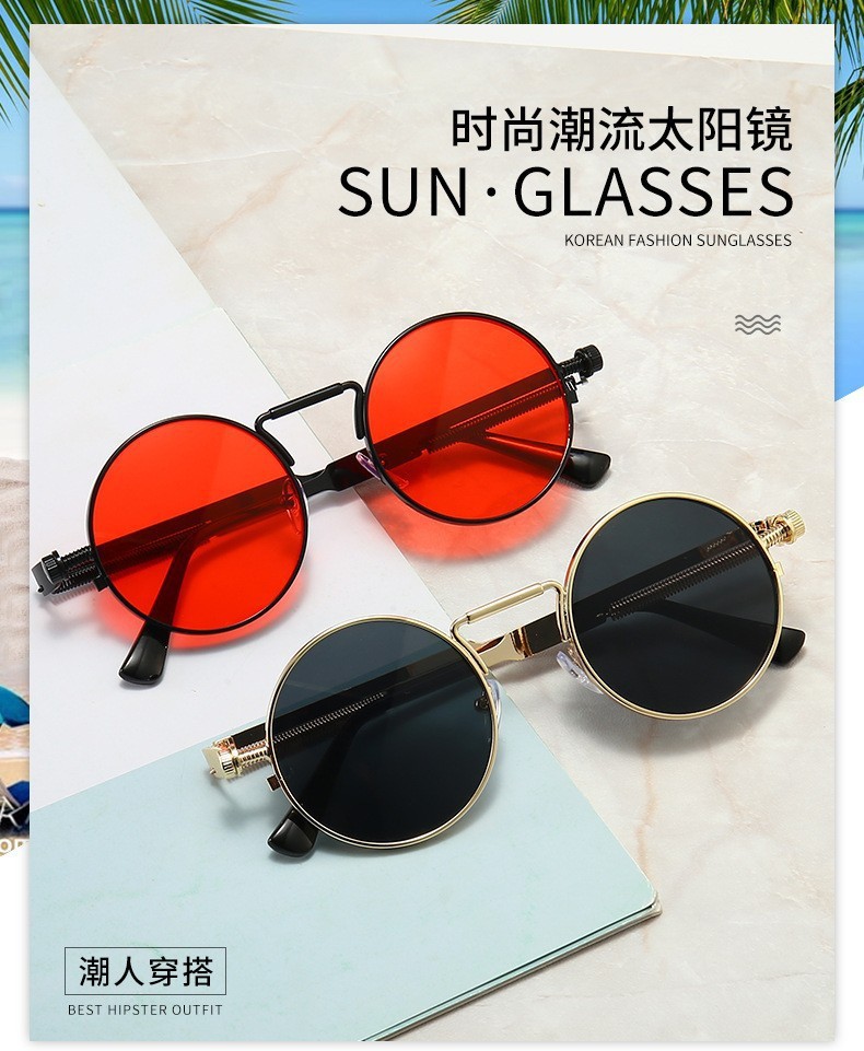 남성과 여성을 위한 새로운 국경 간 패션 라운드 스팀펑크 선글라스, 복고풍 선글라스, 스프링 안경다리 금속 안경