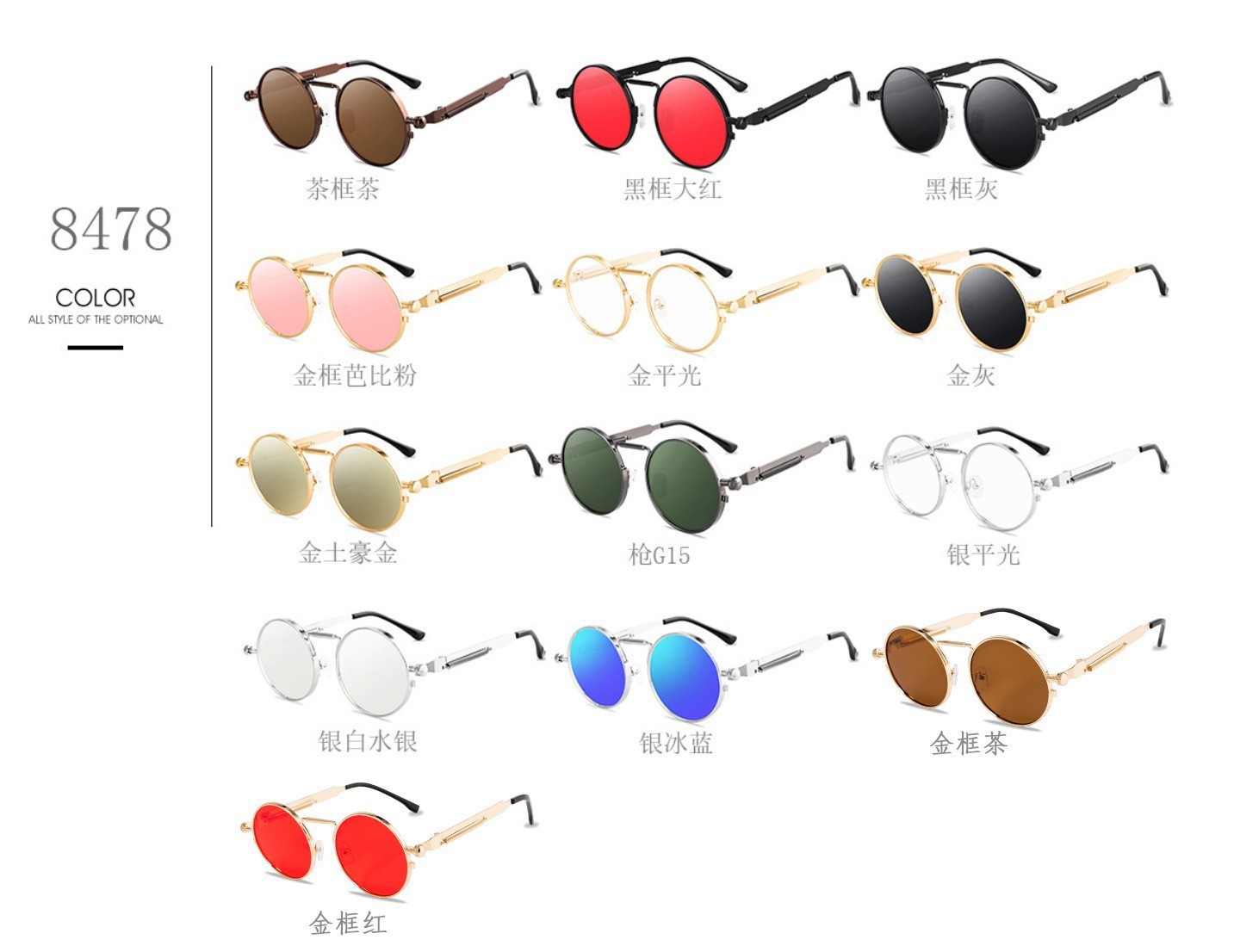 남성과 여성을 위한 새로운 국경 간 패션 라운드 스팀펑크 선글라스, 복고풍 선글라스, 스프링 안경다리 금속 안경스토어 가기