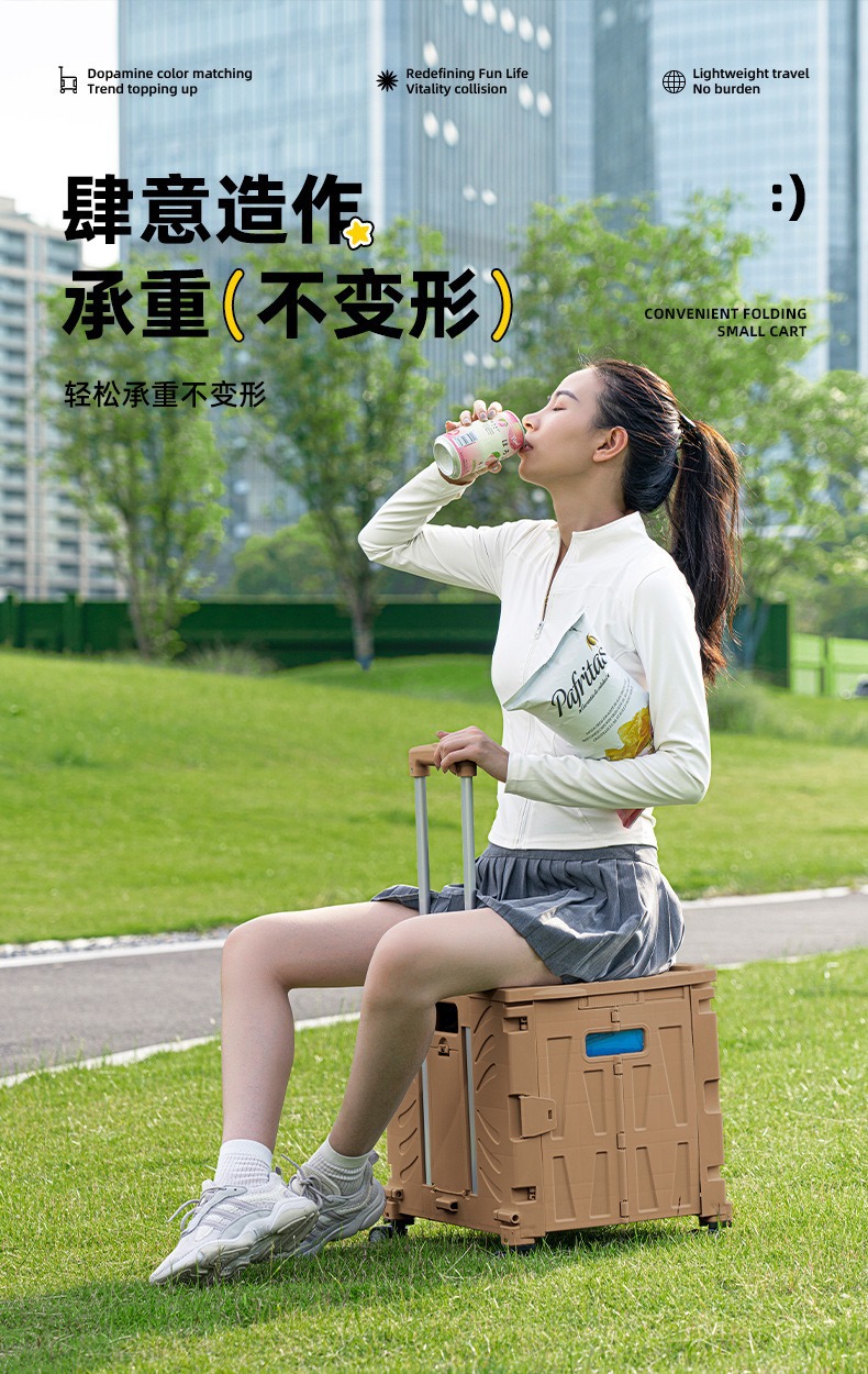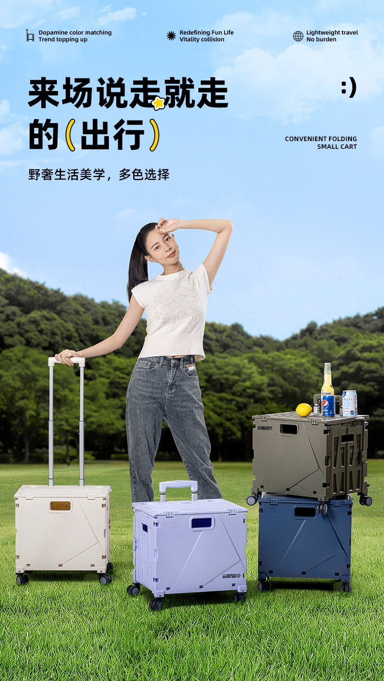 이데 아웃도어 트롤리 캠프 박스 휴대용 앉을 수 있는 쇼핑카트 이동식 수납함 계단 오르기 접이식 쇼핑카트스토어 가기