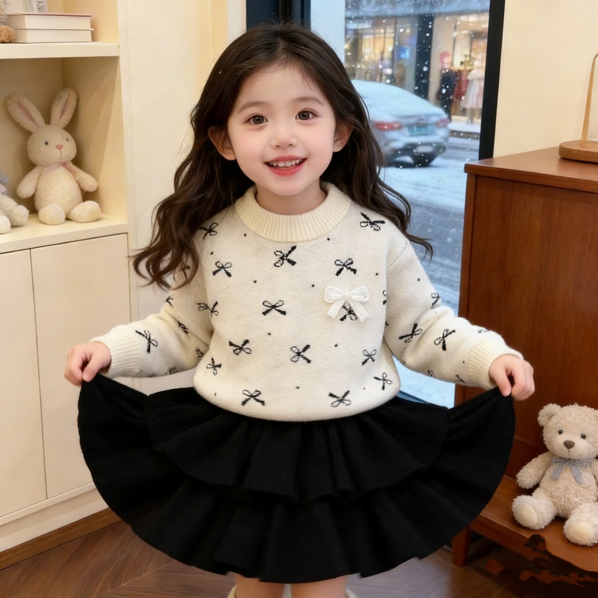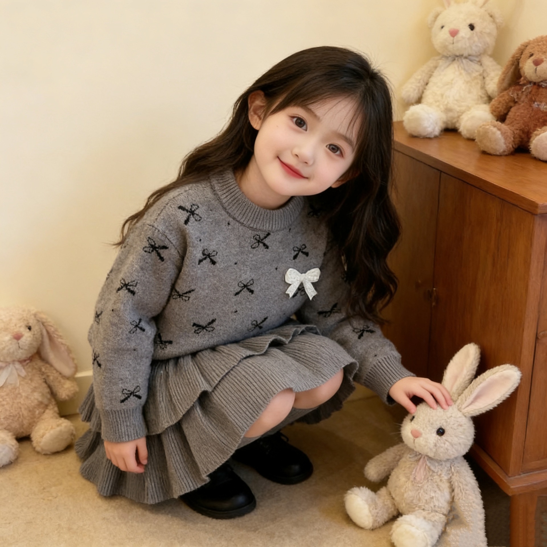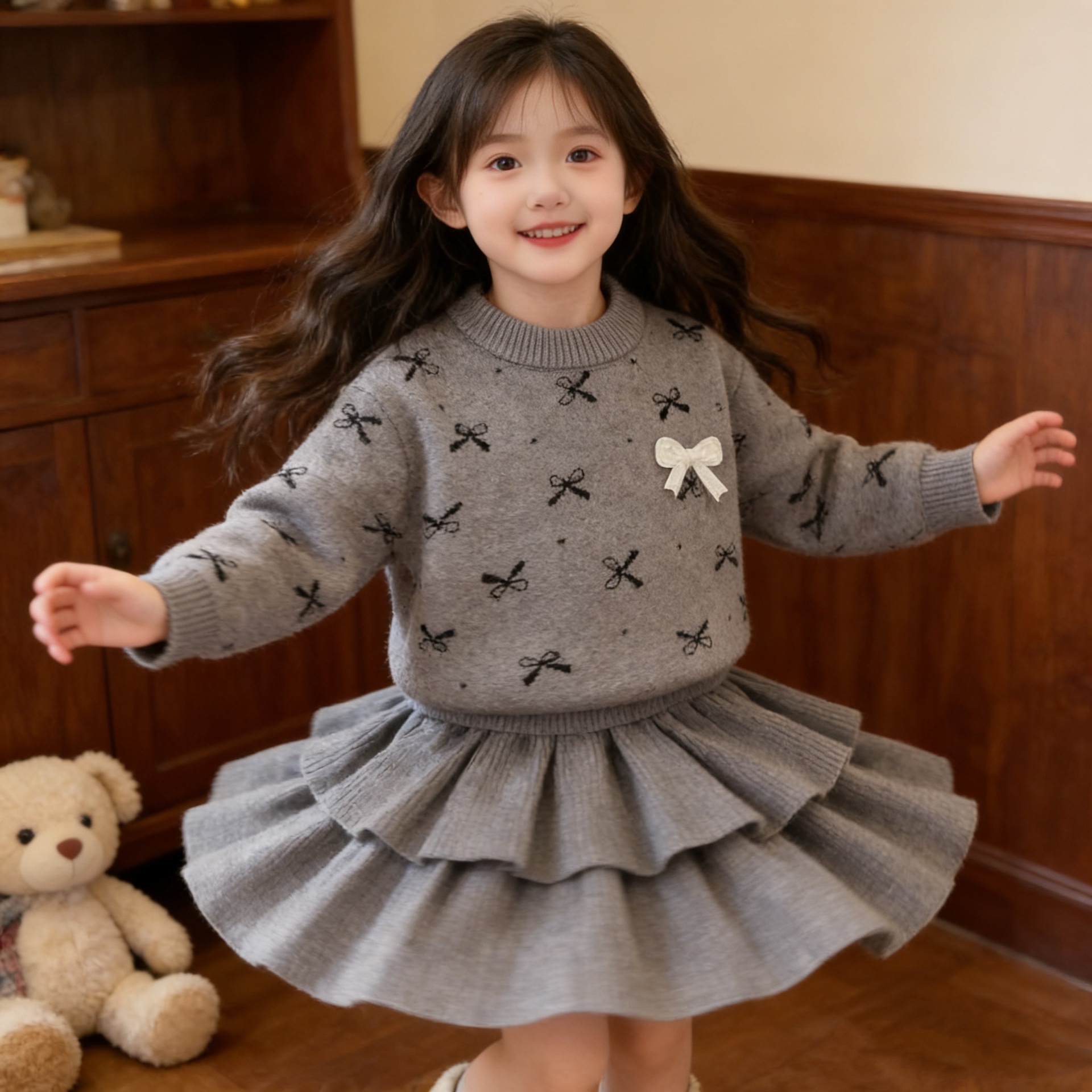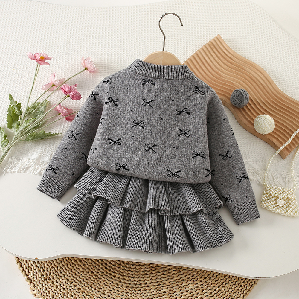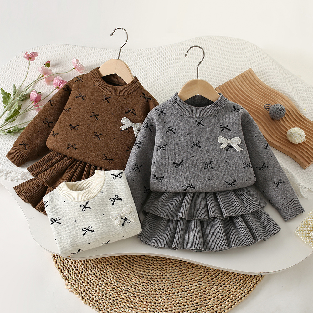 여자 활 스웨터 원피스 25 가을 새 한국 어린이 서양식 니트 올매치 케이크 스커트 투피스 세트스토어 가기