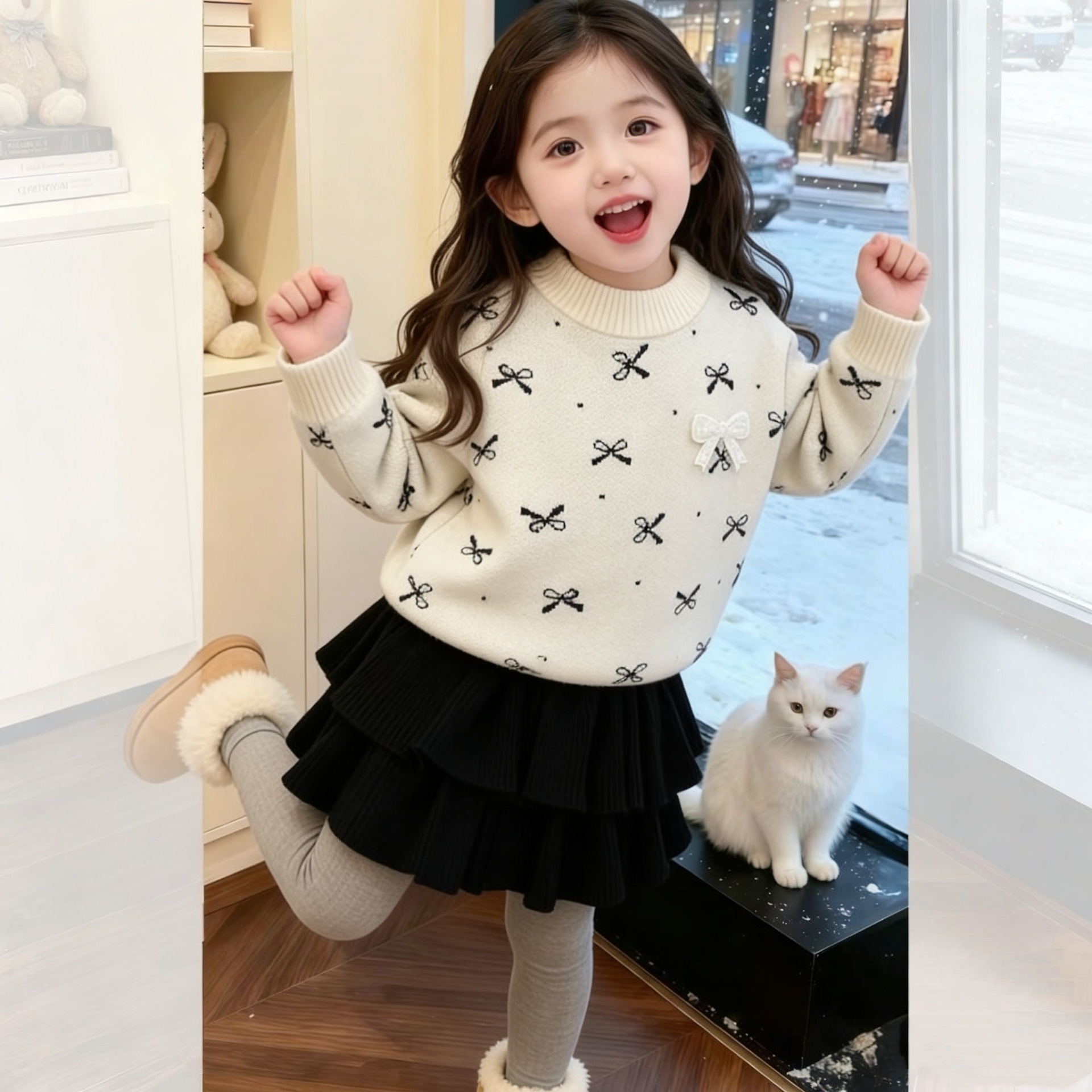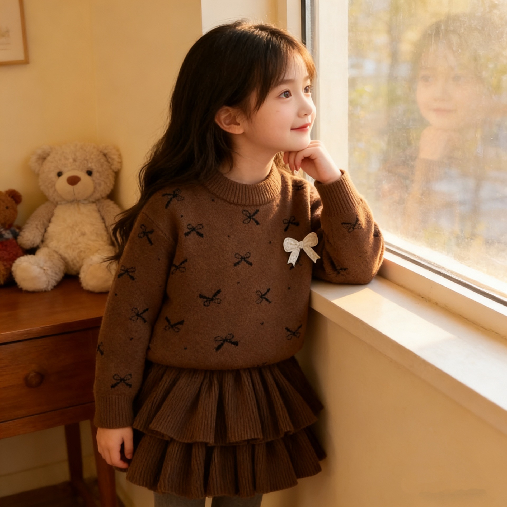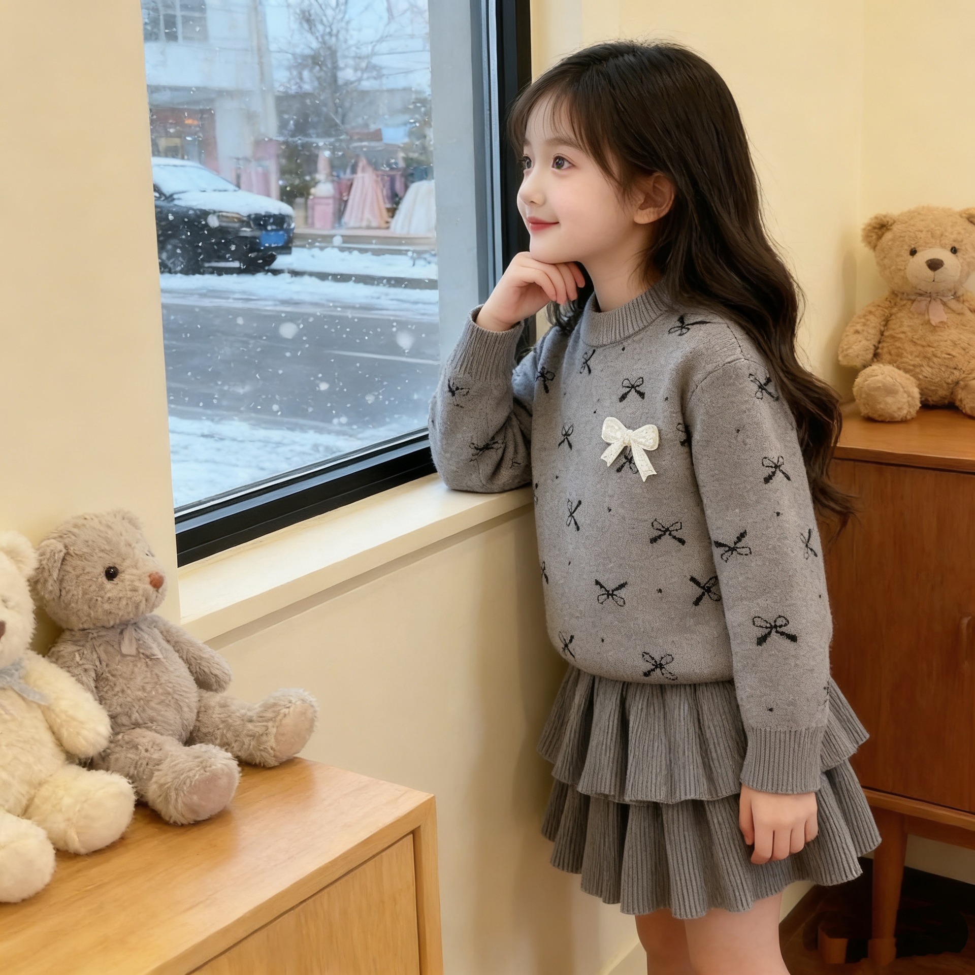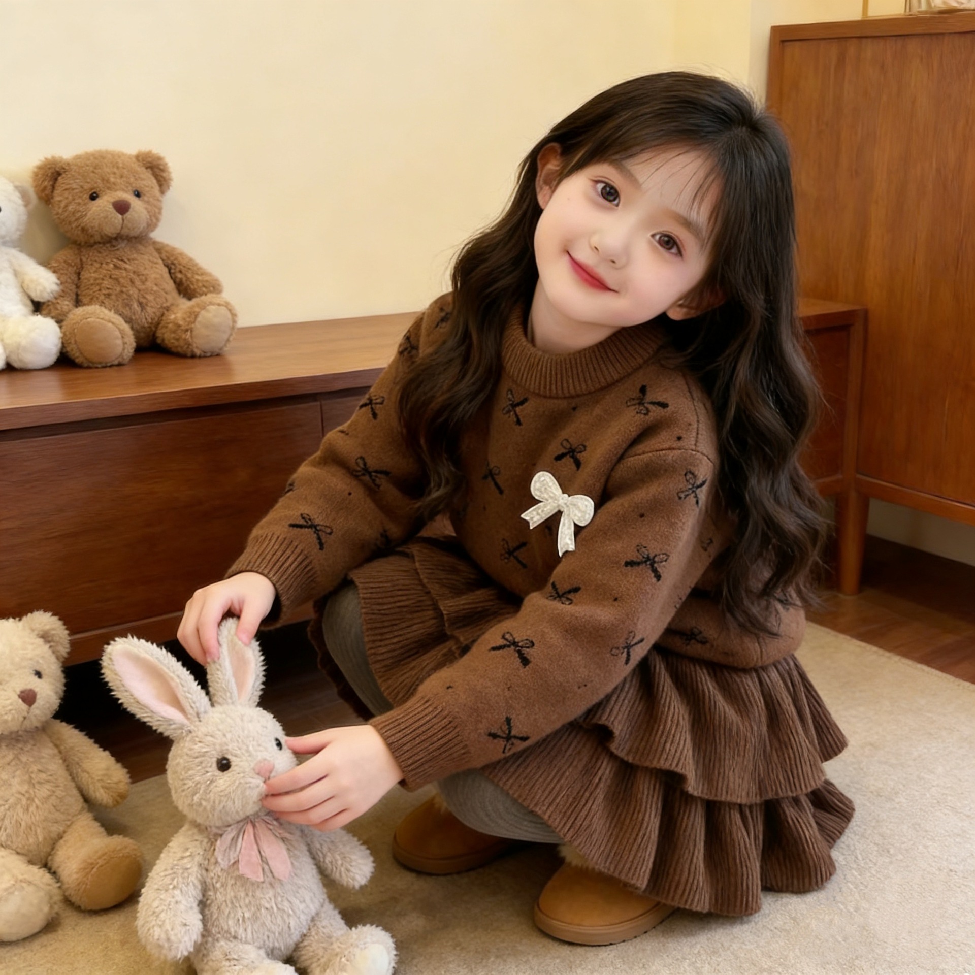 여자 활 스웨터 원피스 25 가을 새 한국 어린이 서양식 니트 올매치 케이크 스커트 투피스 세트스토어 가기