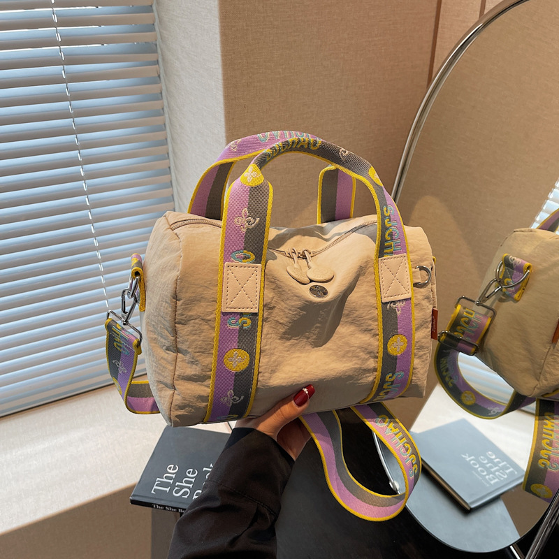 여성을위한 국경 간 천 원통형 핸드백 2025 여름 새로운 틈새 패션 편지 캐주얼 다목적 어깨 크로스 바디 백