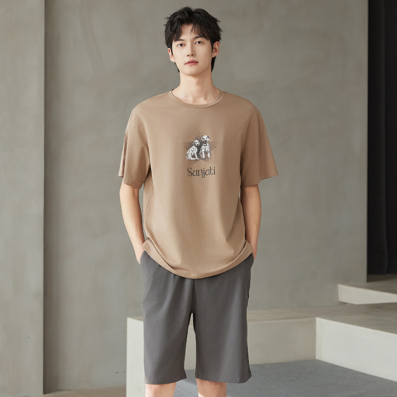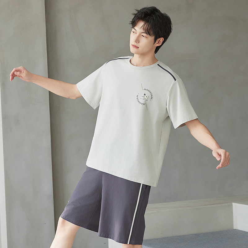 공장 직접 판매 여름 신제품 남성 잠옷 루즈하고 편안하며 캐주얼하고 심플한 반팔 바지 홈웨어 세트