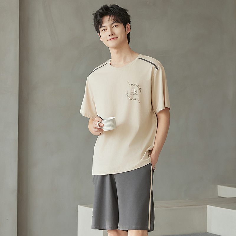 공장 직접 판매 여름 신제품 남성 잠옷 루즈하고 편안하며 캐주얼하고 심플한 반팔 바지 홈웨어 세트스토어 가기