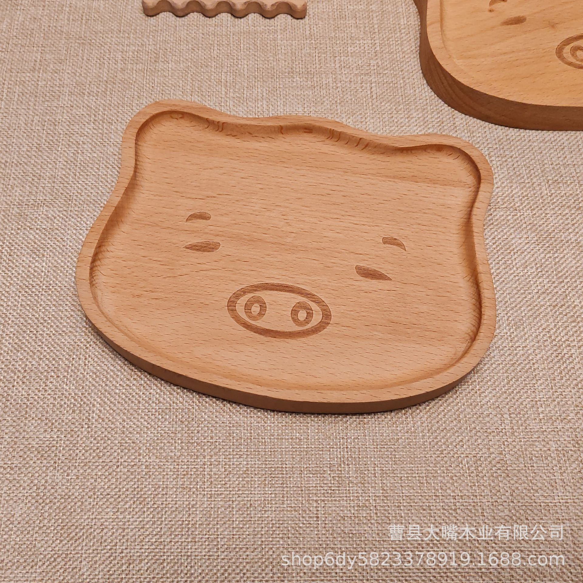 크로스보더 너도밤나무 돼지머리 트레이 원목 아침식사 접시 어린이 보조식품 가정용 과일 간식 만화 나무 트레이