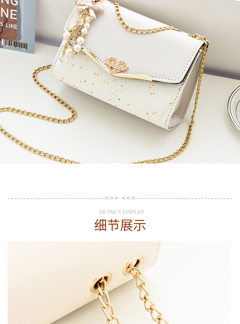 체인 스팽글 크로스 바디 스몰 스퀘어 백 2025 가방 여성 패션 한국어 버전 러브 숄더백 보우 진주 펜던트