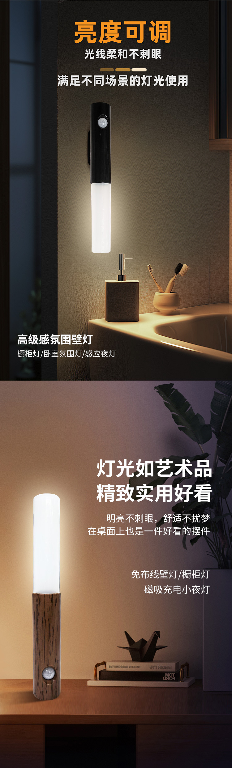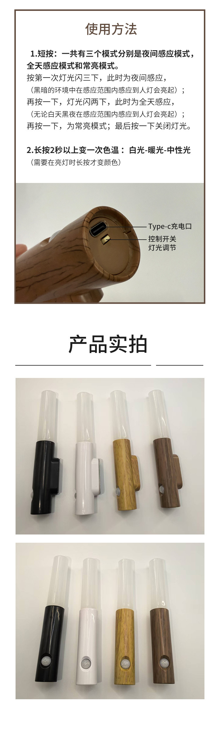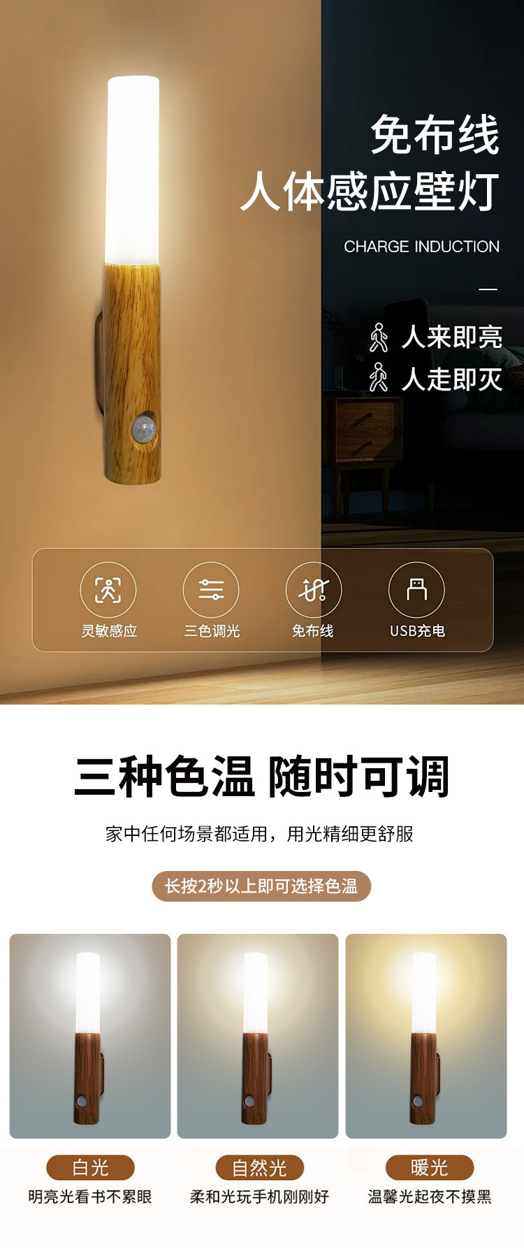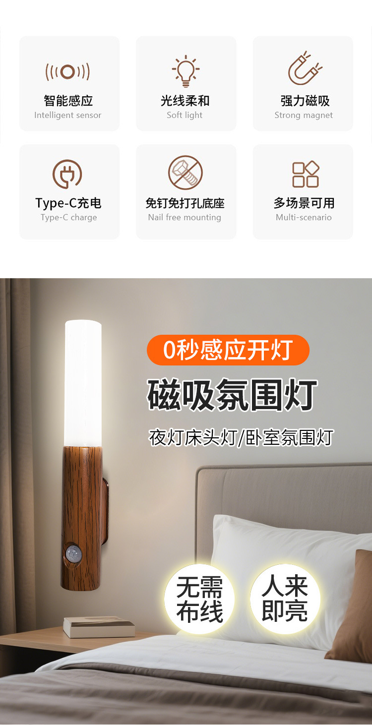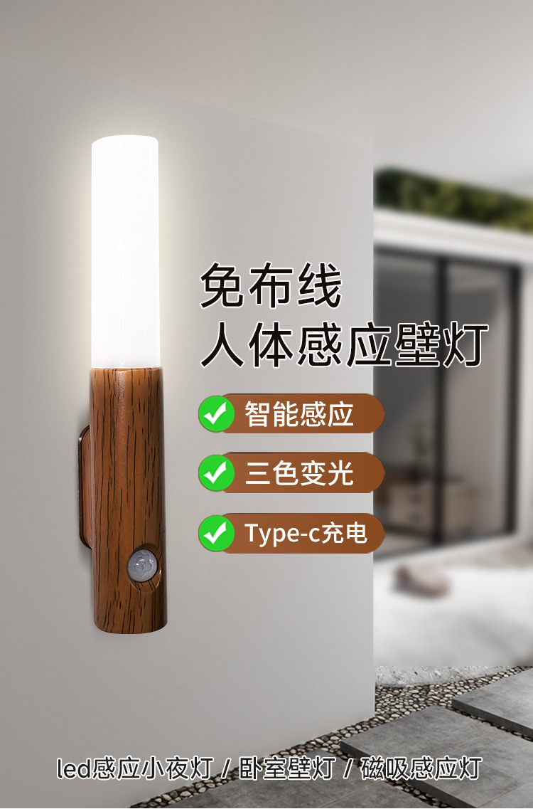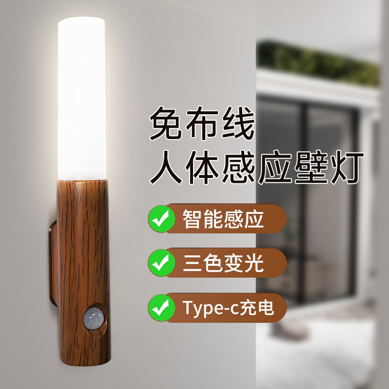 지능형 인체 유도 야간 조명 led 스마트 홈 충전 분위기 조명 홈 복도 통로 목재 유도