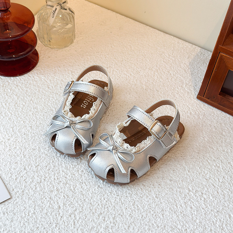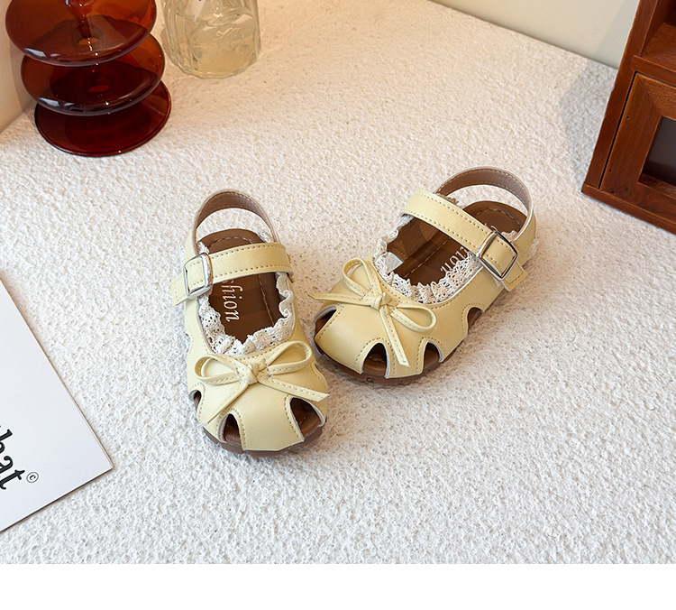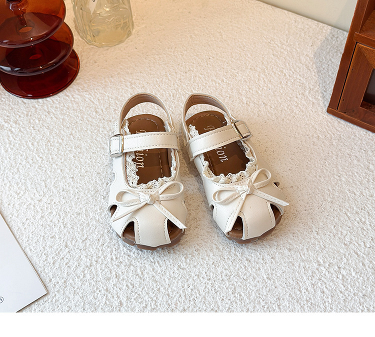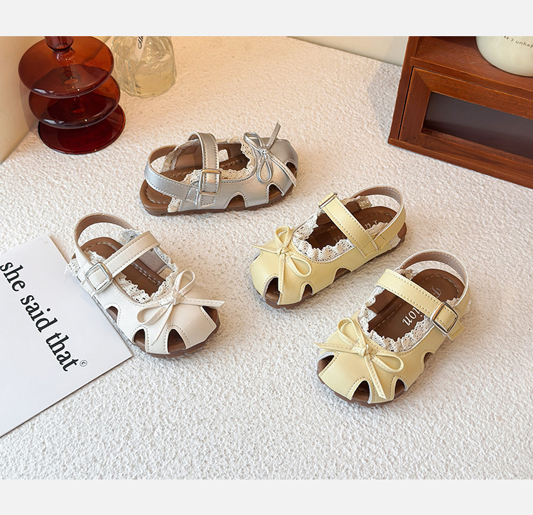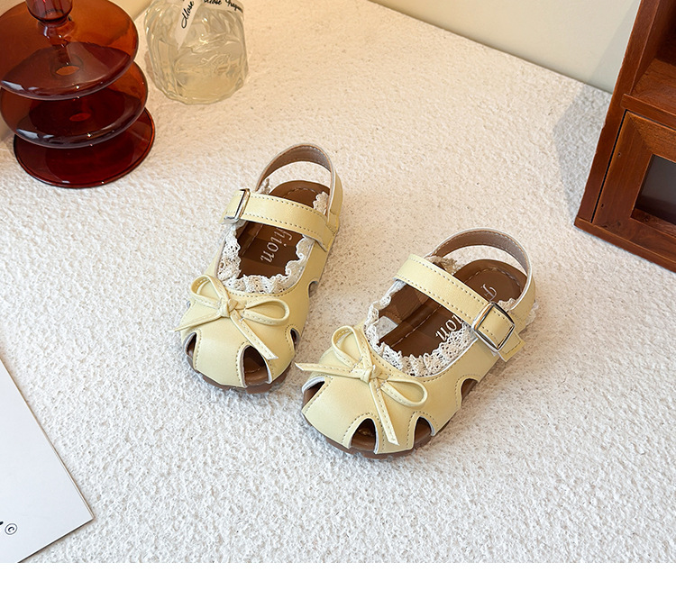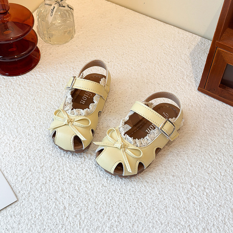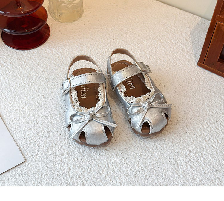 어린이 할로우 발가락 샌들 2025 년 여름 새로운 한국식 소녀 레이스 보우 프린세스 신발 유행 스커트스토어 가기