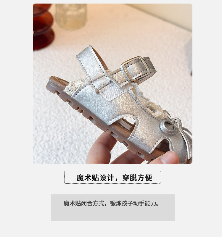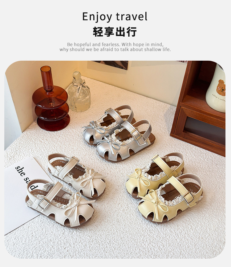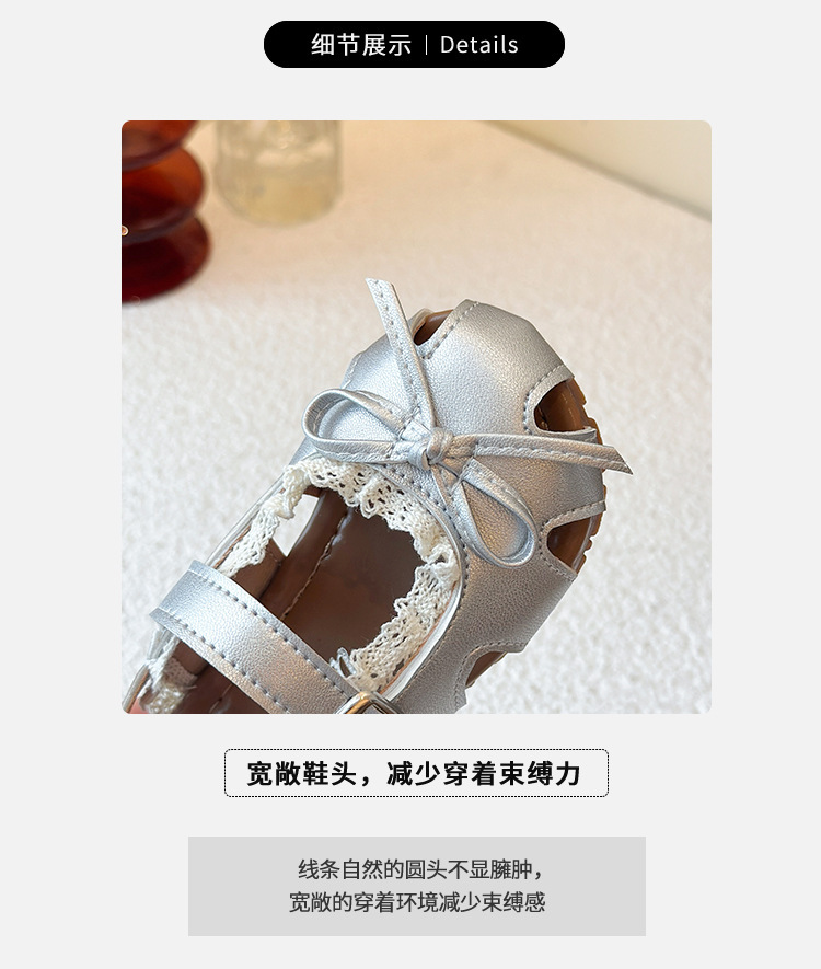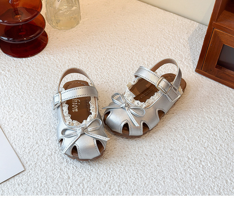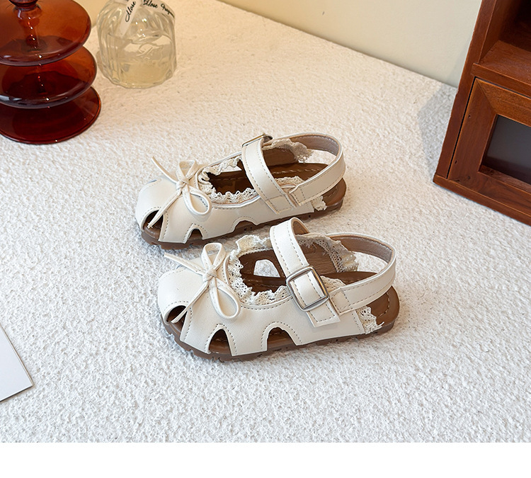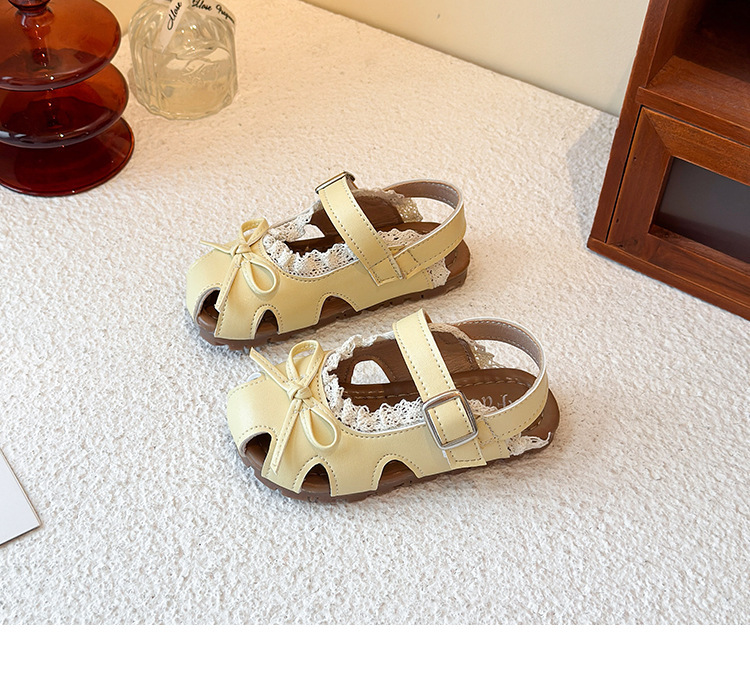 어린이 할로우 발가락 샌들 2025 년 여름 새로운 한국식 소녀 레이스 보우 프린세스 신발 유행 스커트스토어 가기