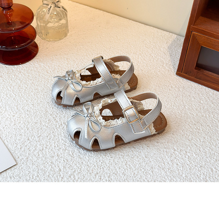 어린이 할로우 발가락 샌들 2025 년 여름 새로운 한국식 소녀 레이스 보우 프린세스 신발 유행 스커트