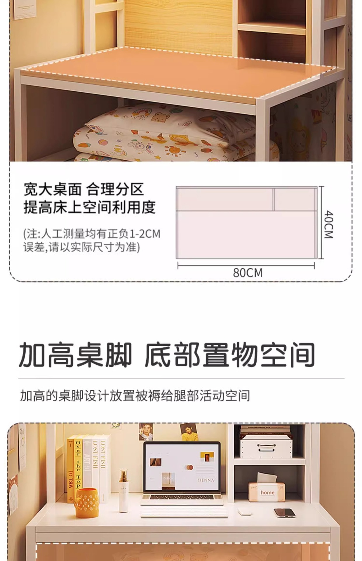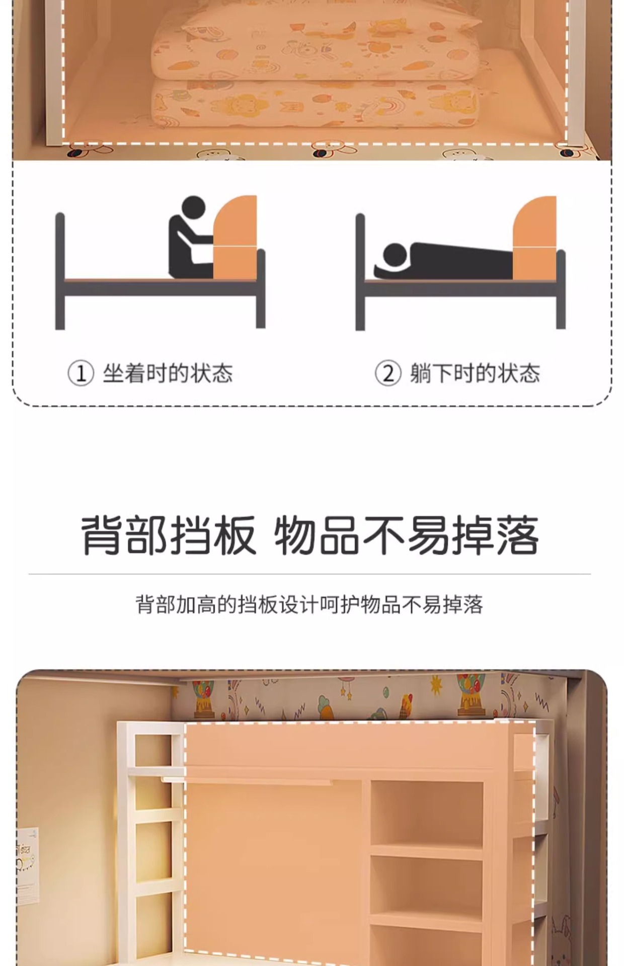 • [간단한 차단 조항] 따뜻한 흰색 80*40*86cm 이층 침대에 적합