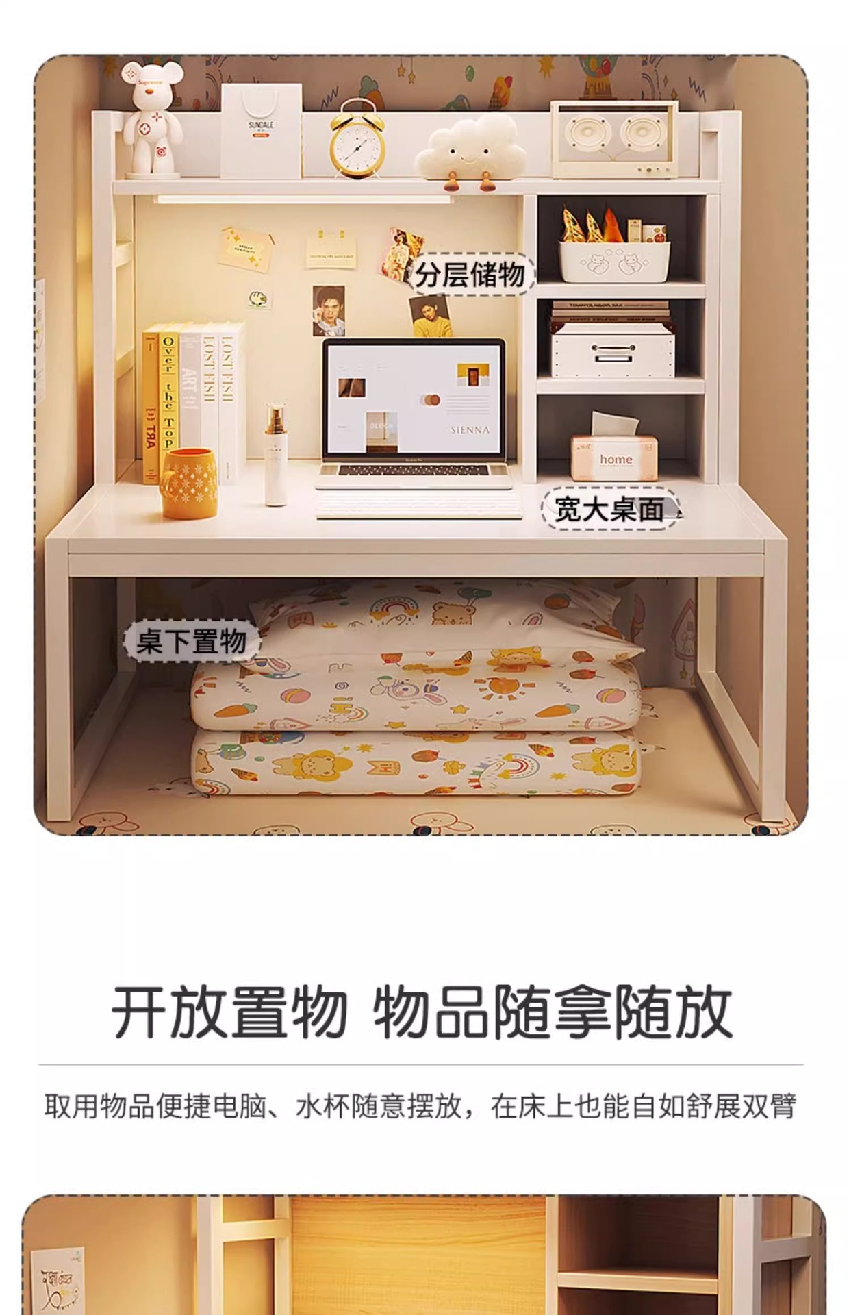 • [풀백패널 + 이동식 책장 + LED 조명] 따뜻한 화이트 80*40*86cm 이층침대용 범용
