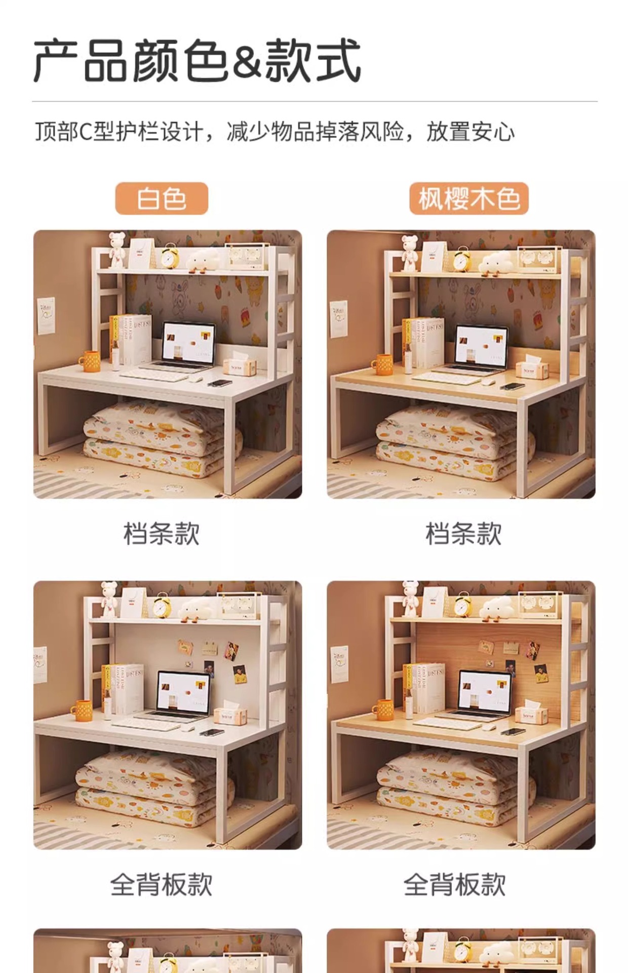 • 품질이 업그레이드된 고밀도 보드 [풀백보드+책장] 단풍나무 체리색 80cm | 두꺼운 강철 프레임