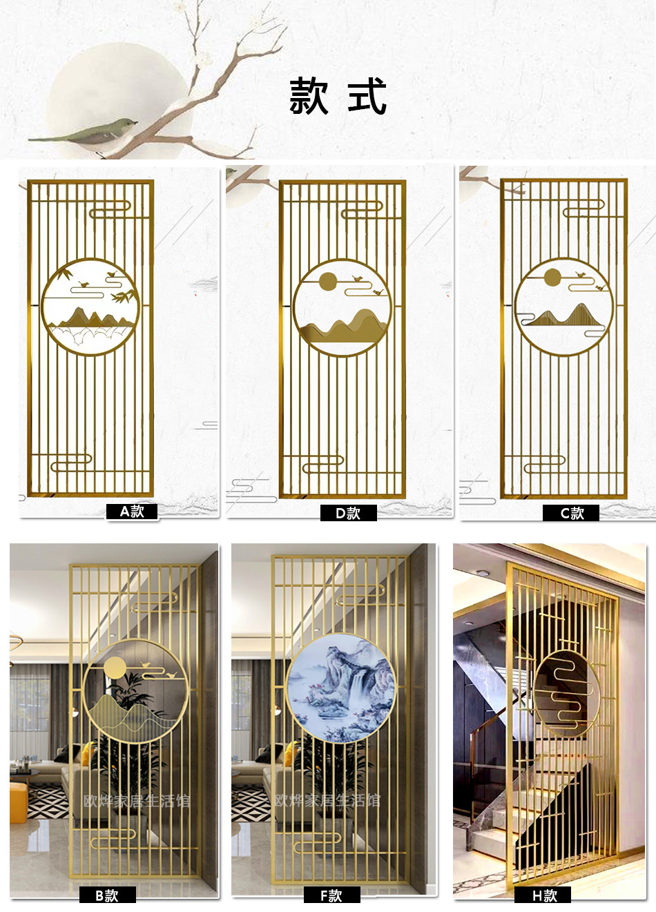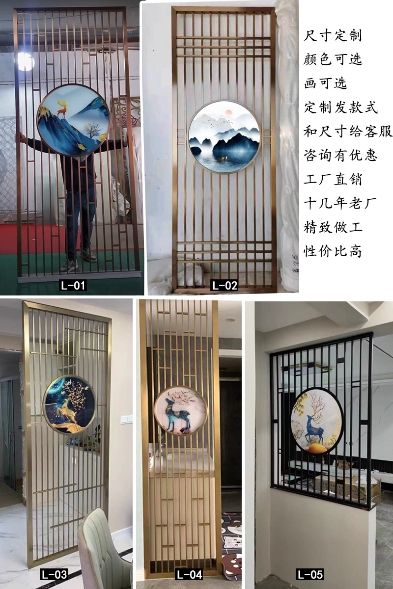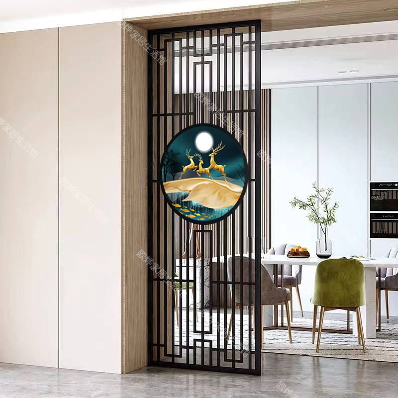 J^ 새로운 중국 스타일 철 파티션 스크린 거실 입구 문 차단 입구 스테인레스 스틸 사무실 레스토랑