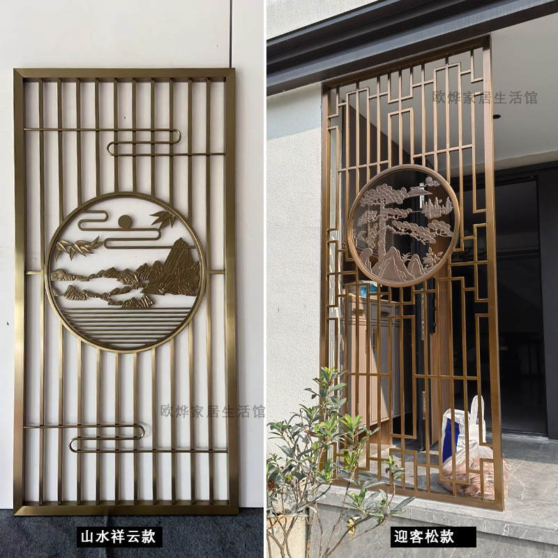 J^ 새로운 중국 스타일 철 파티션 스크린 거실 입구 문 차단 입구 스테인레스 스틸 사무실 레스토랑스토어 가기