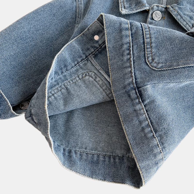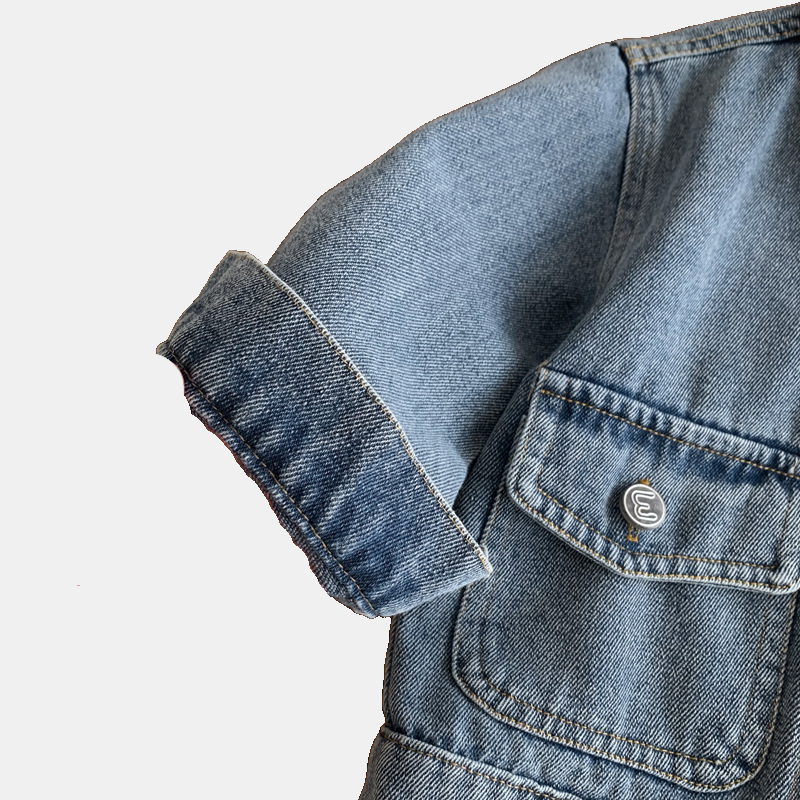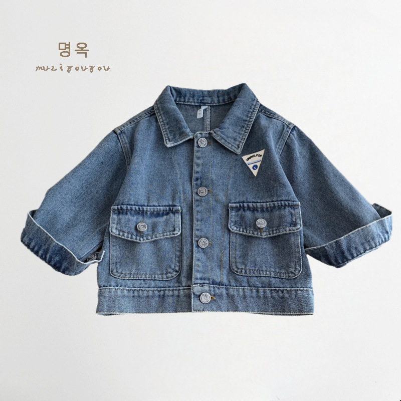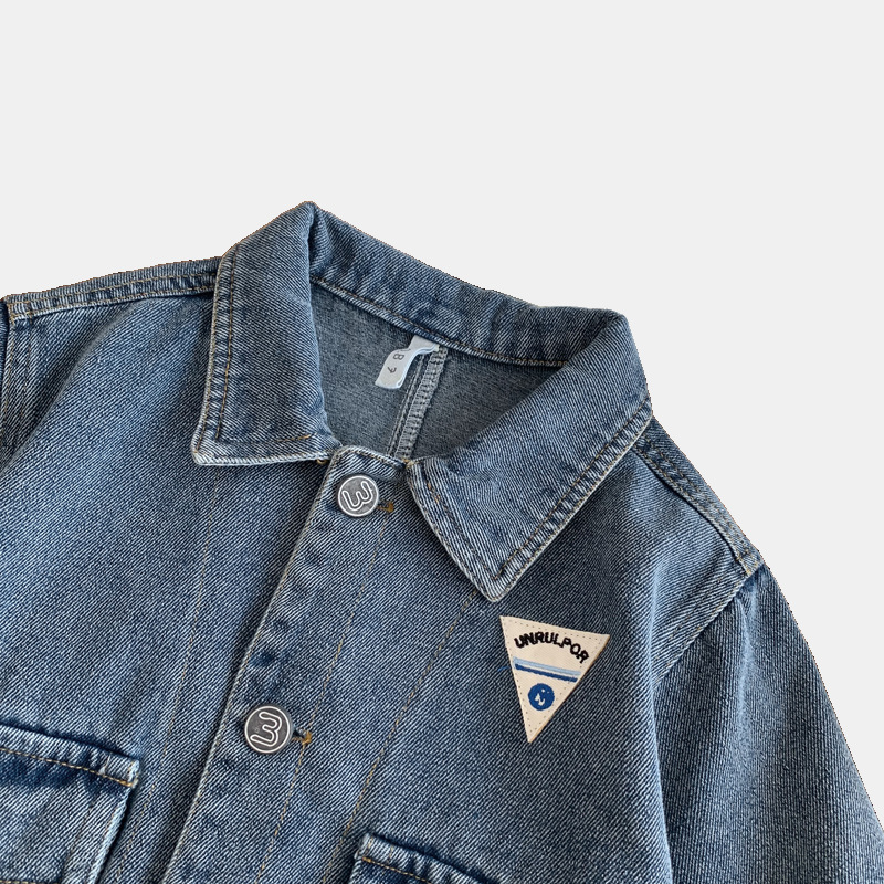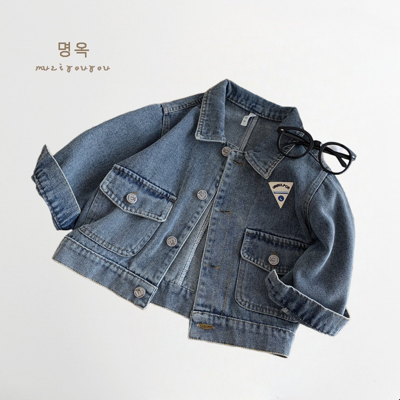 소년과 소녀를위한 새로운 어린이 데님 재킷, 오래된 복고풍 재킷, 아기 유행 브랜드 옷깃 라벨 탑