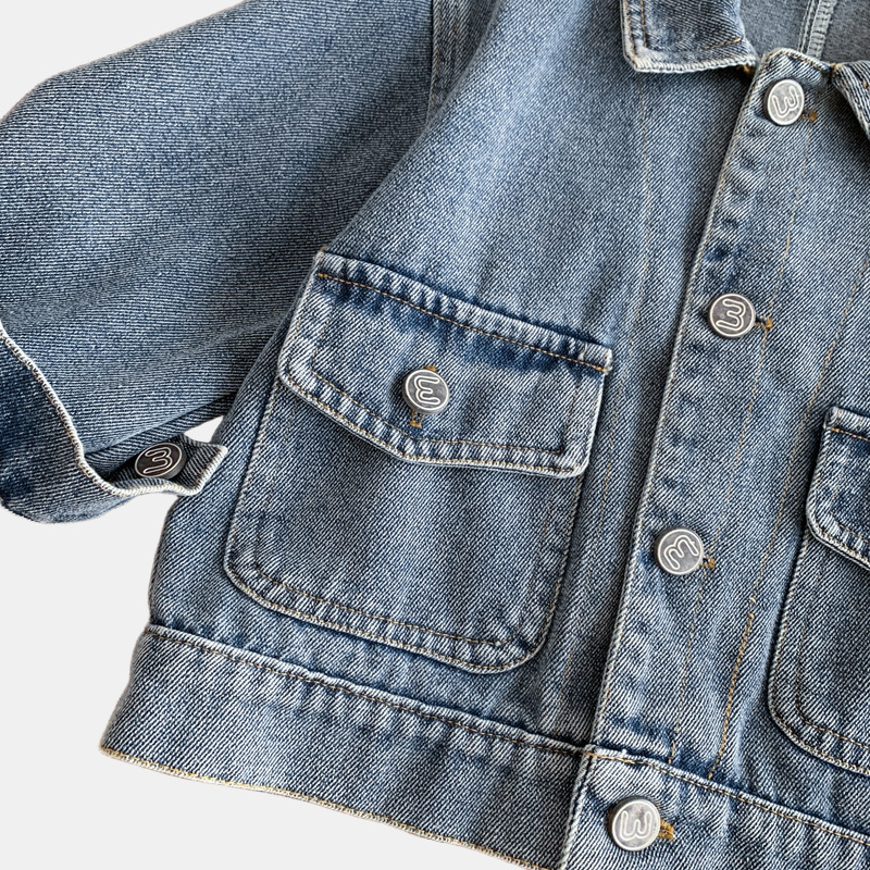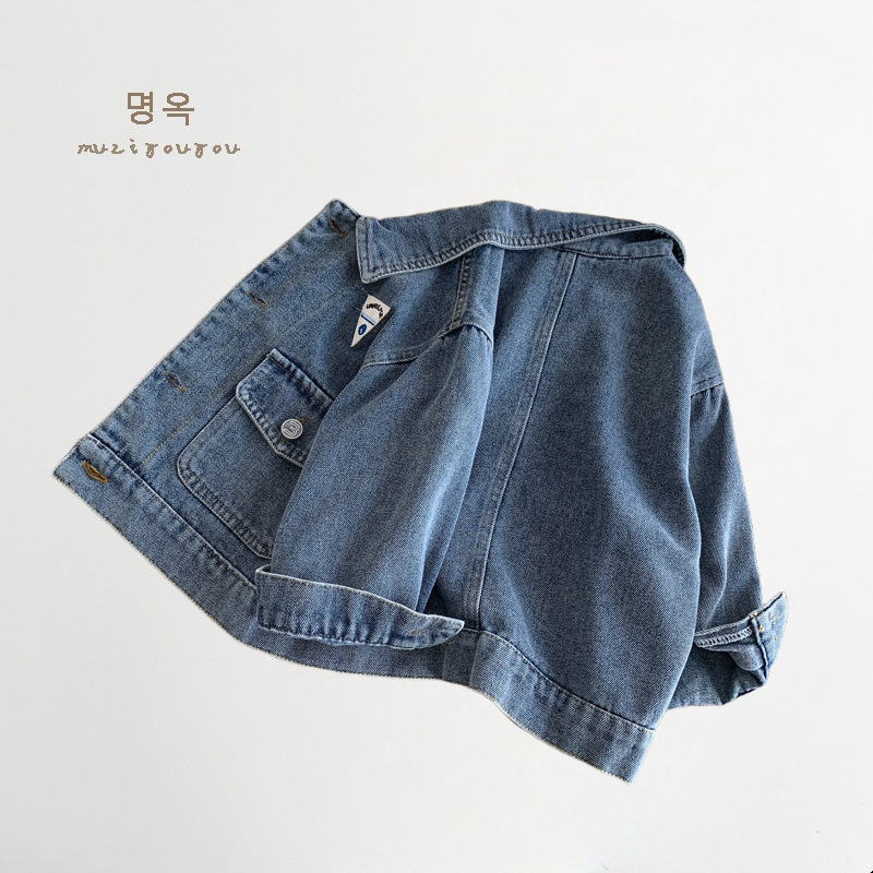 소년과 소녀를위한 새로운 어린이 데님 재킷, 오래된 복고풍 재킷, 아기 유행 브랜드 옷깃 라벨 탑스토어 가기