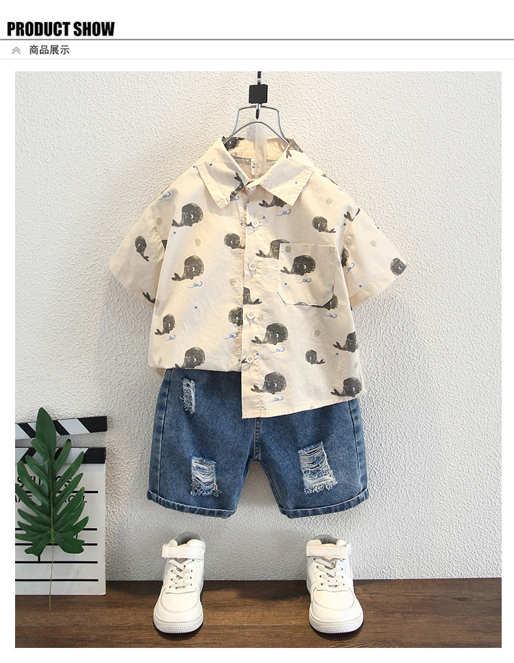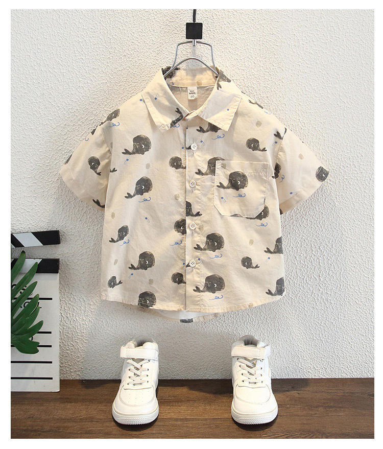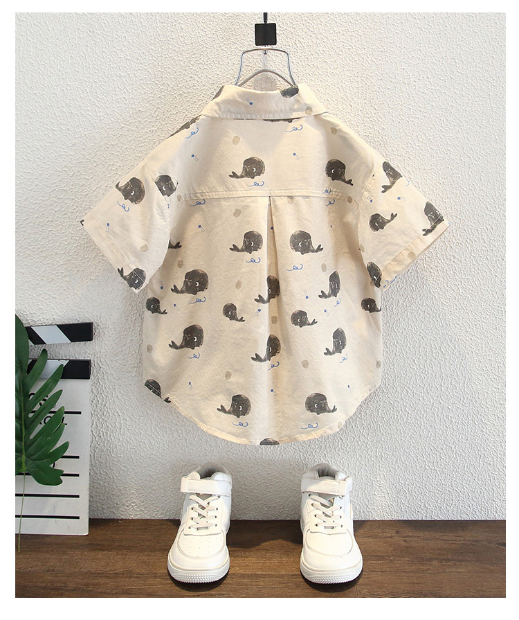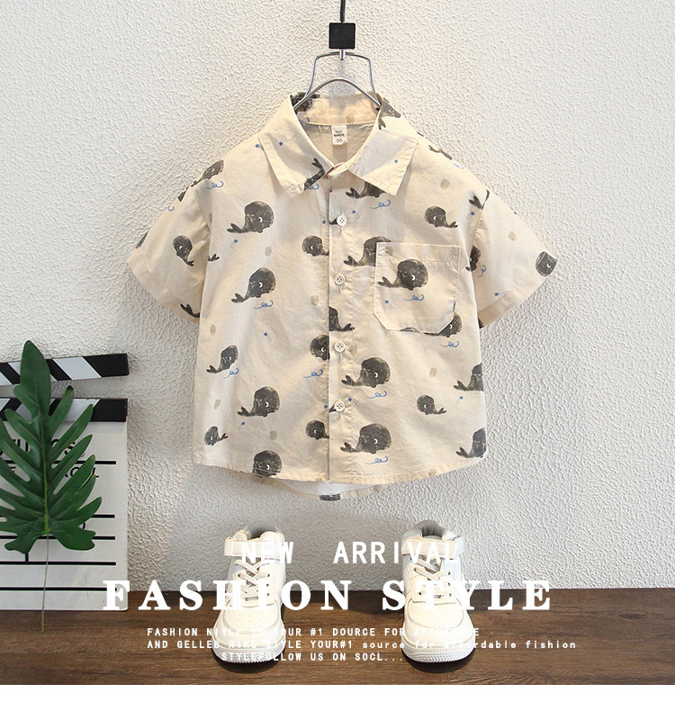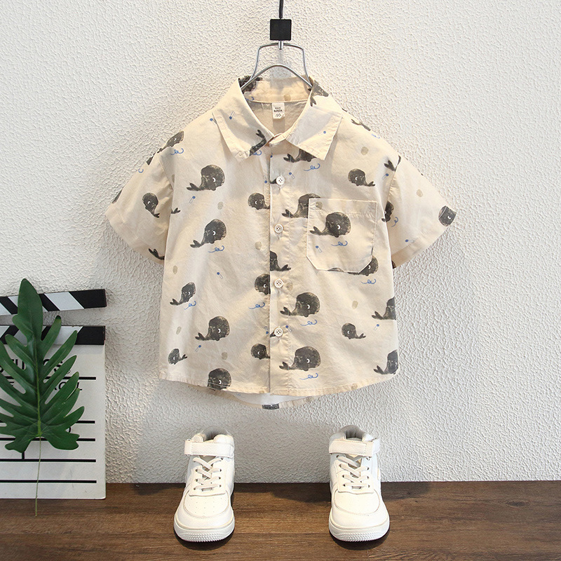 소년 여름 셔츠 반팔 2025 새로운 스타일 어린이 만화 프린트 탑 어린 소년 캐주얼 셔츠 유행스토어 가기