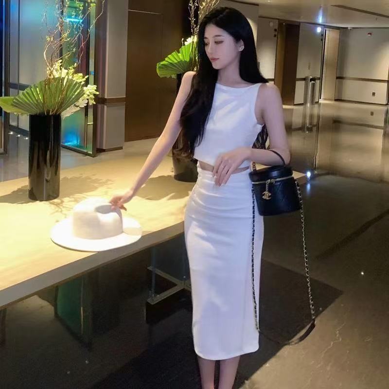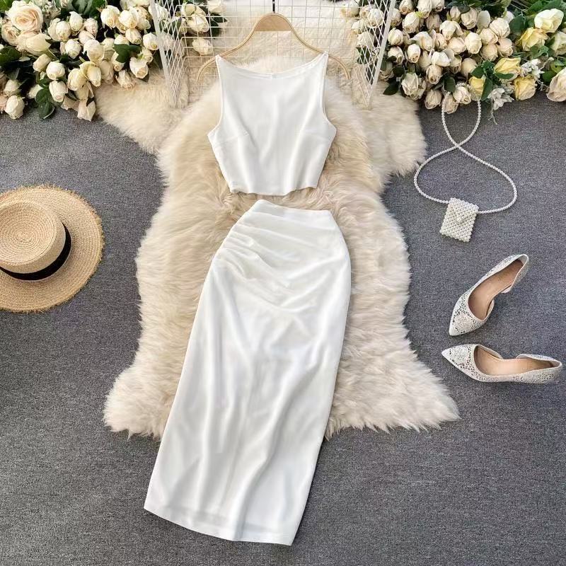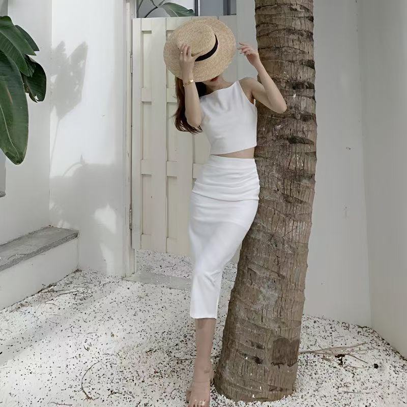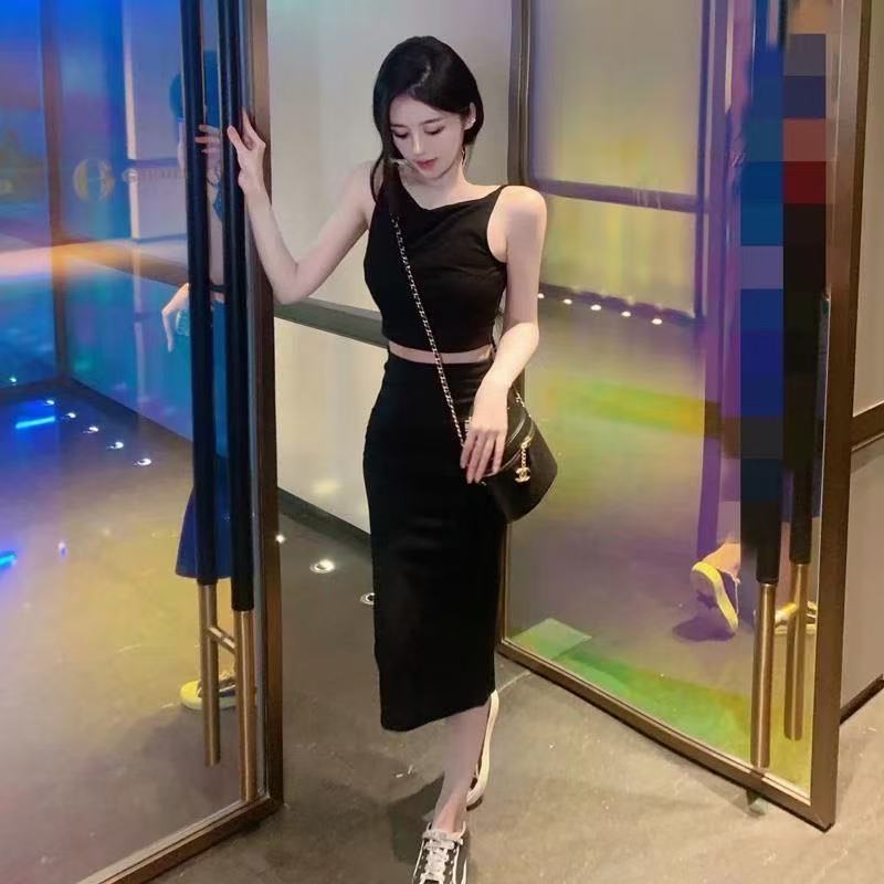 여성을 위한 프렌치 레트로 스트리트 여신 스타일 슈트, 봄 여름 어깨 조끼 + 여성용 하프 길이 스커트 슈트스토어 가기