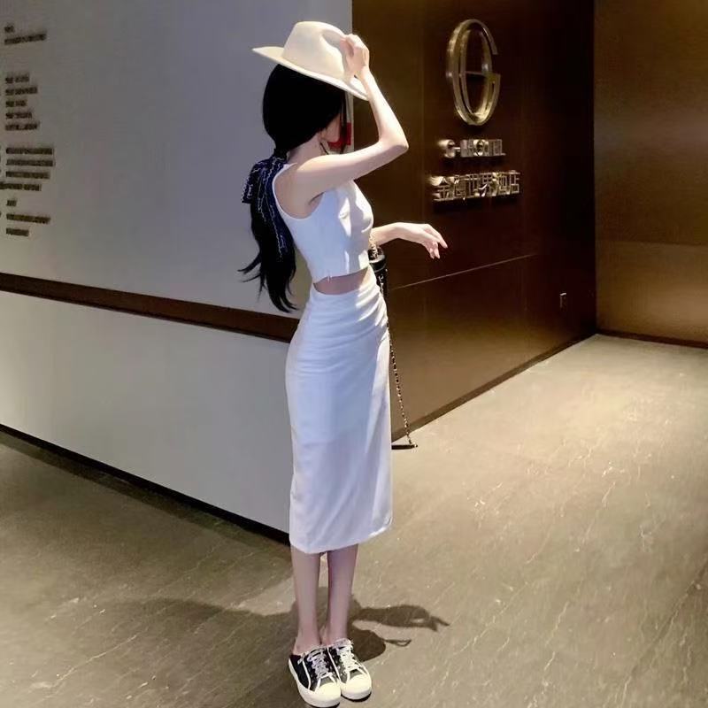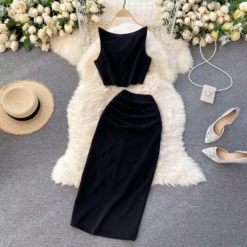 여성을 위한 프렌치 레트로 스트리트 여신 스타일 슈트, 봄 여름 어깨 조끼 + 여성용 하프 길이 스커트 슈트