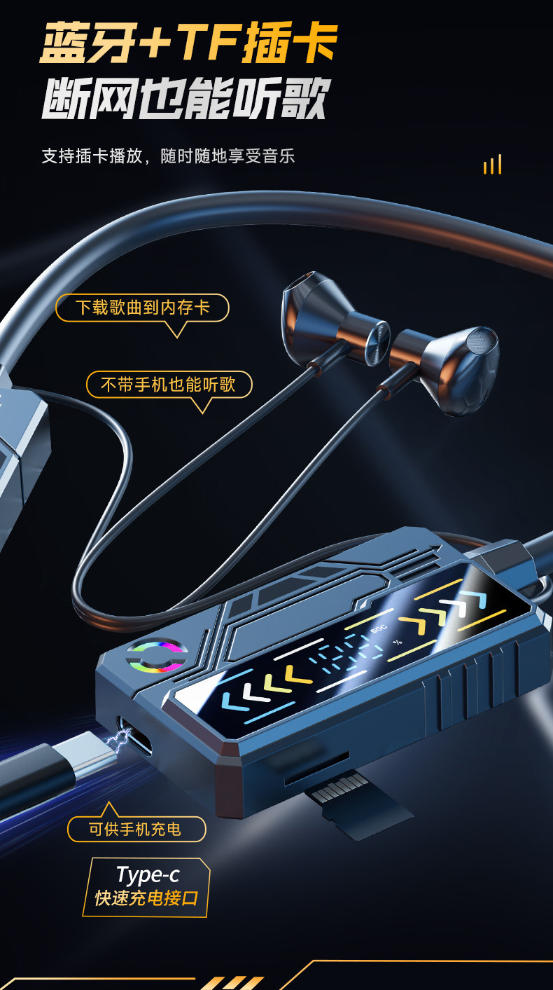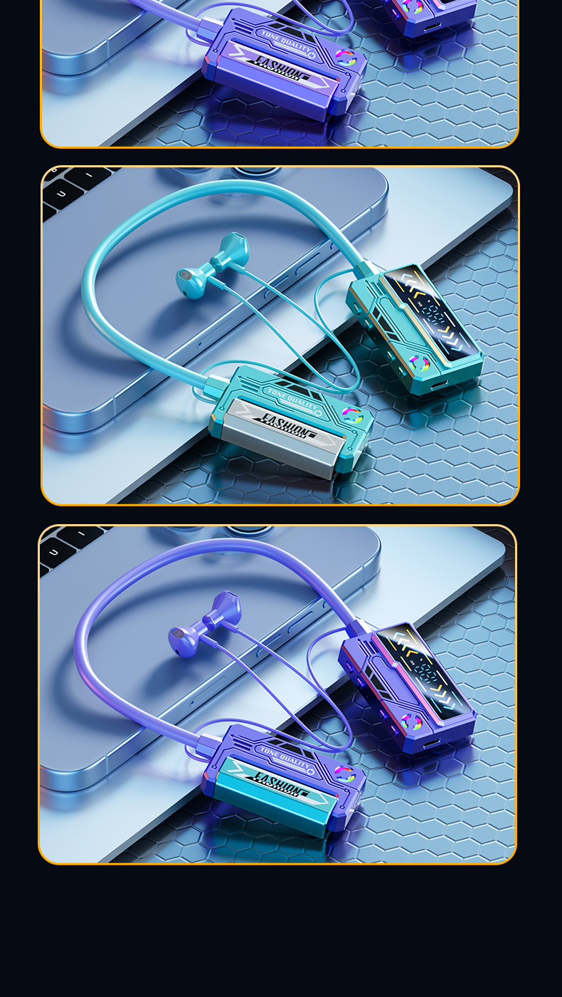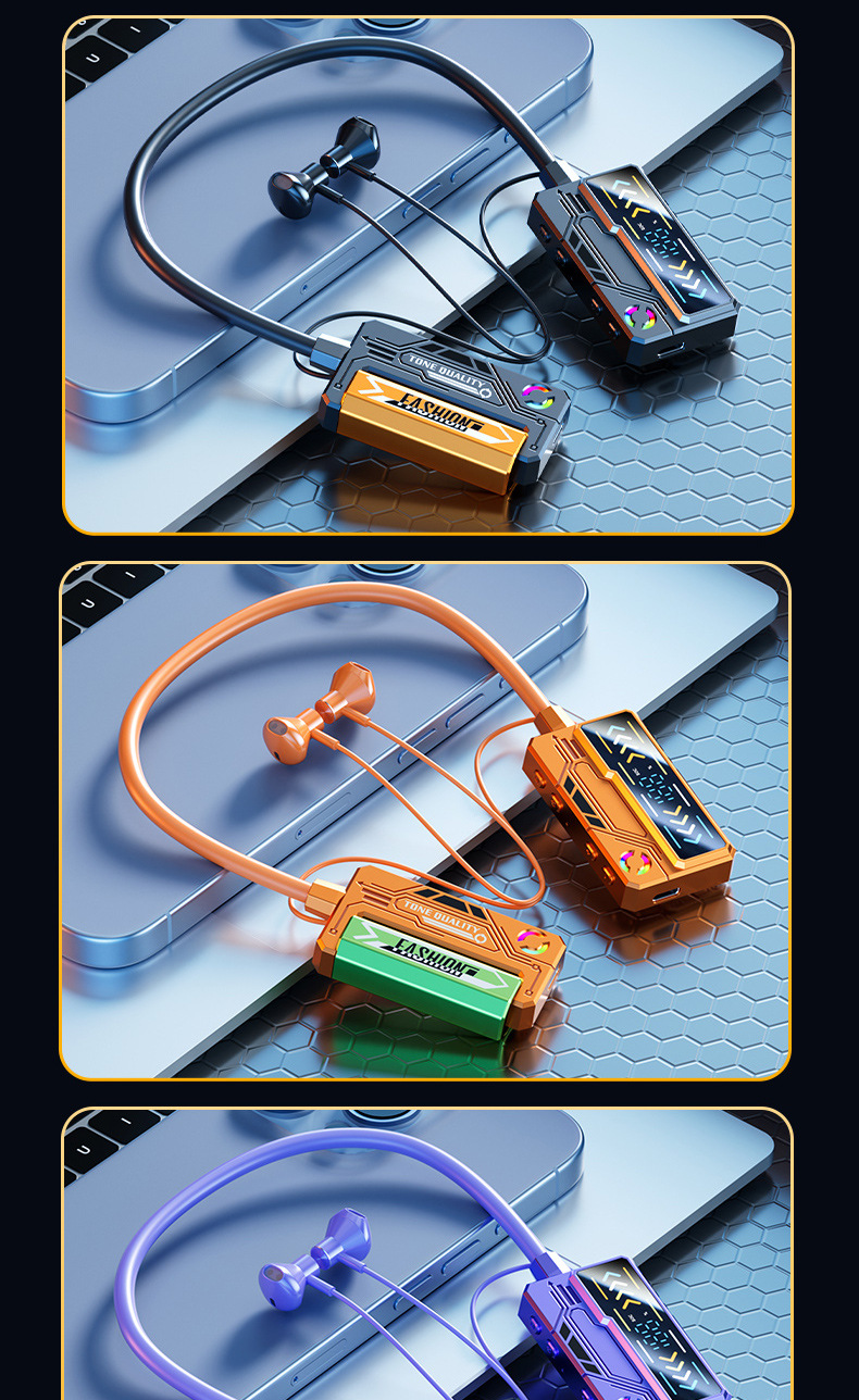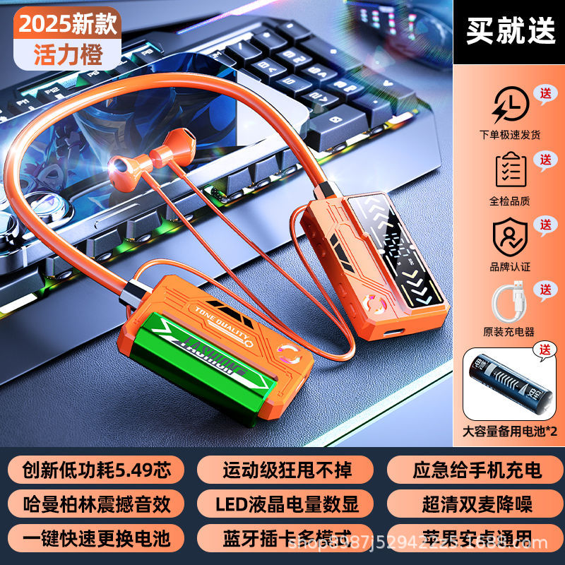 새로운 디지털 디스플레이 B15 블루투스 이어폰, 목걸이형, 배터리 충전 기능 내장, 비상 충전 기능 탑재, 틱톡에서 인기 상품