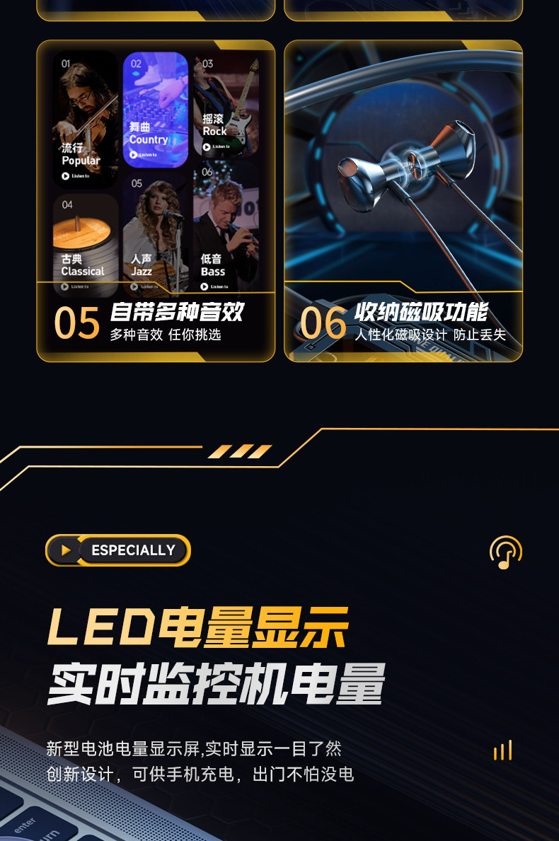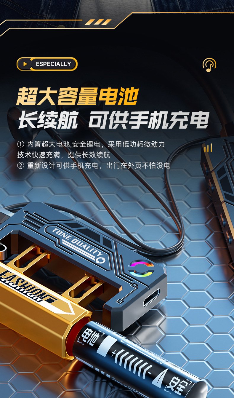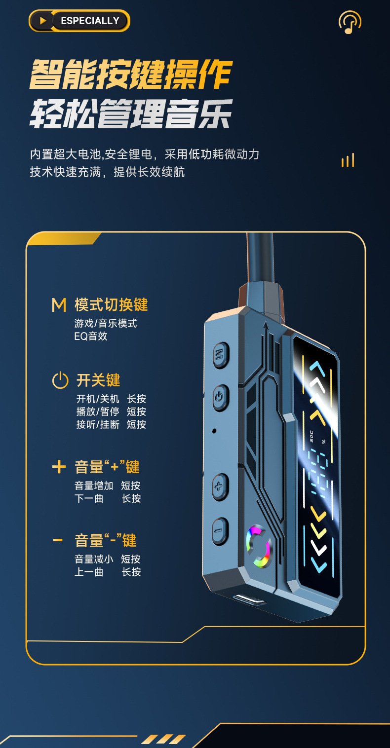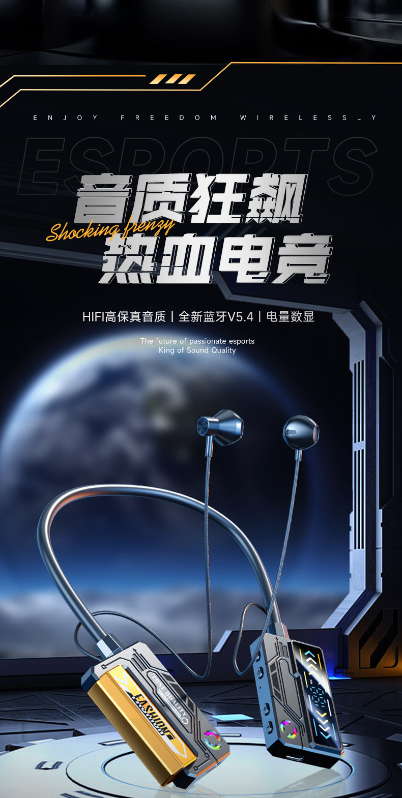 새로운 디지털 디스플레이 B15 블루투스 이어폰, 목걸이형, 배터리 충전 기능 내장, 비상 충전 기능 탑재, 틱톡에서 인기 상품