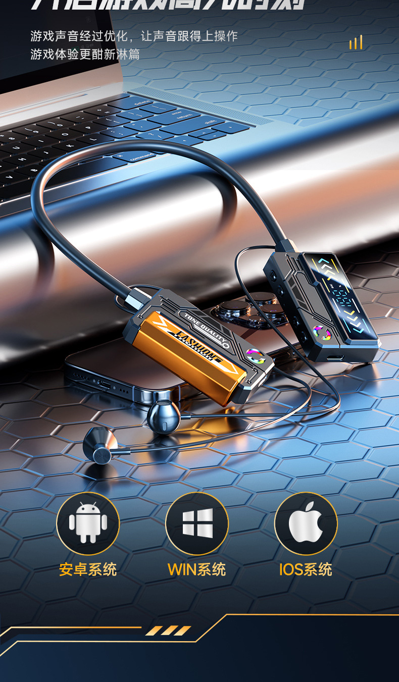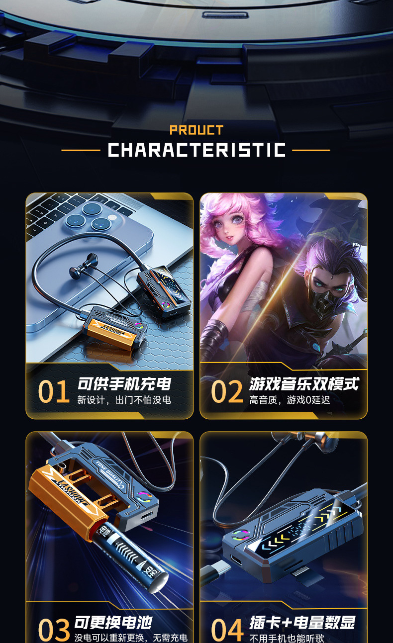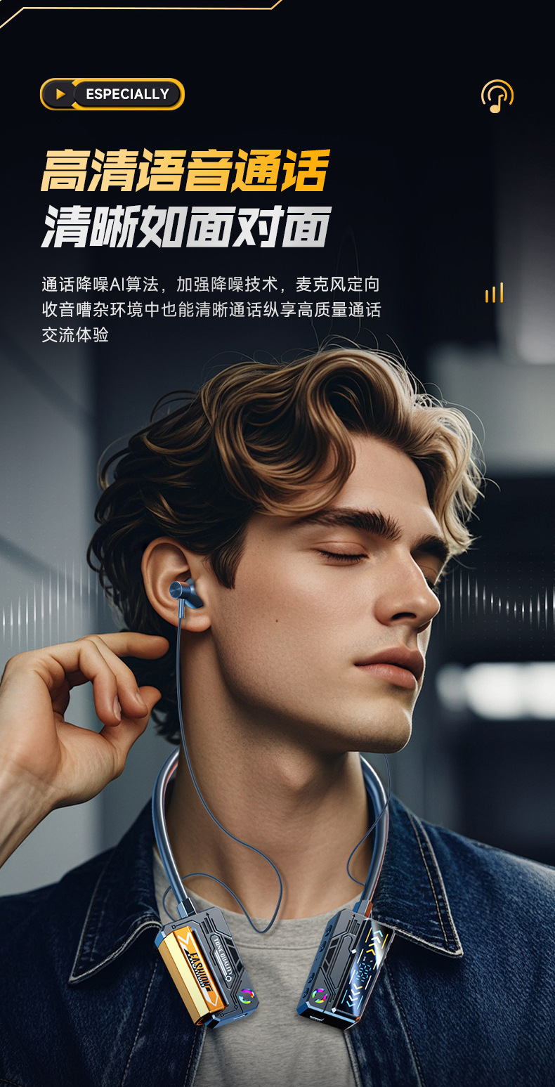 새로운 디지털 디스플레이 B15 블루투스 이어폰, 목걸이형, 배터리 충전 기능 내장, 비상 충전 기능 탑재, 틱톡에서 인기 상품스토어 가기