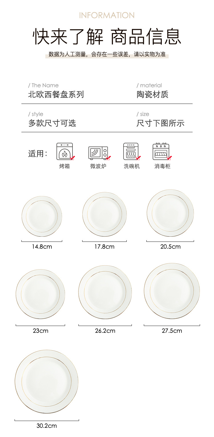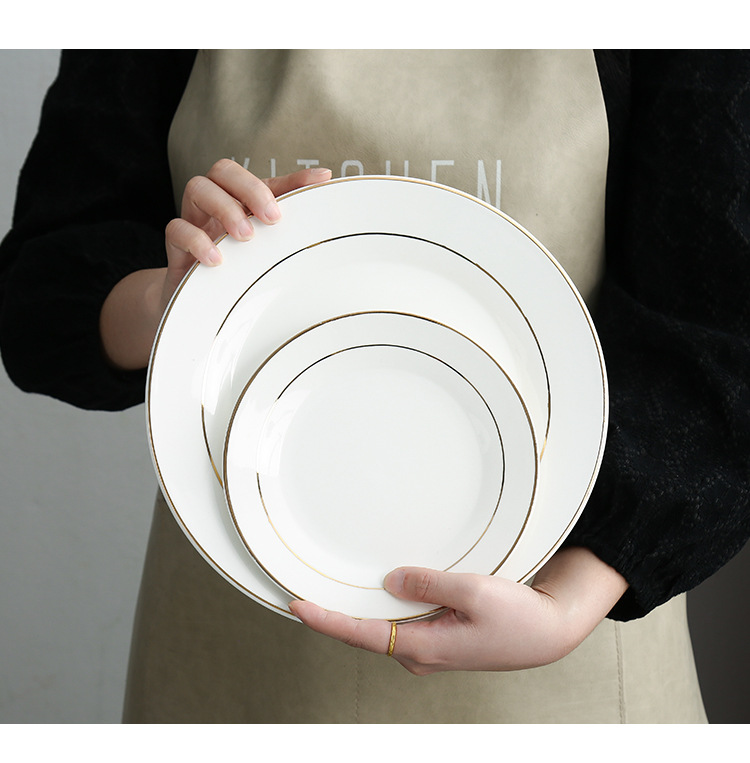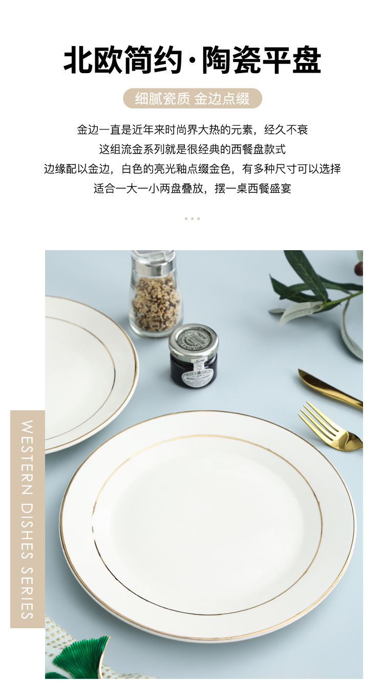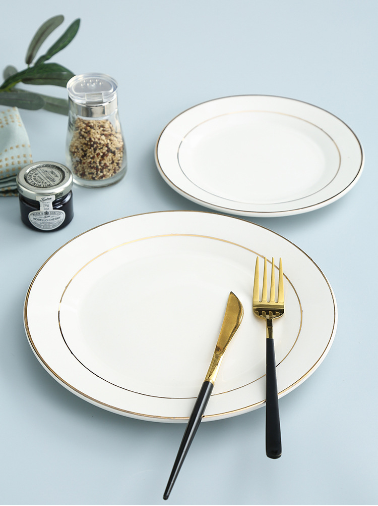 스테이크 접시, 금테 세라믹 원형 서양 음식 가정용 접시 접시 얕은 접시 플랫 접시 서양 식기 크리에이티브스토어 가기