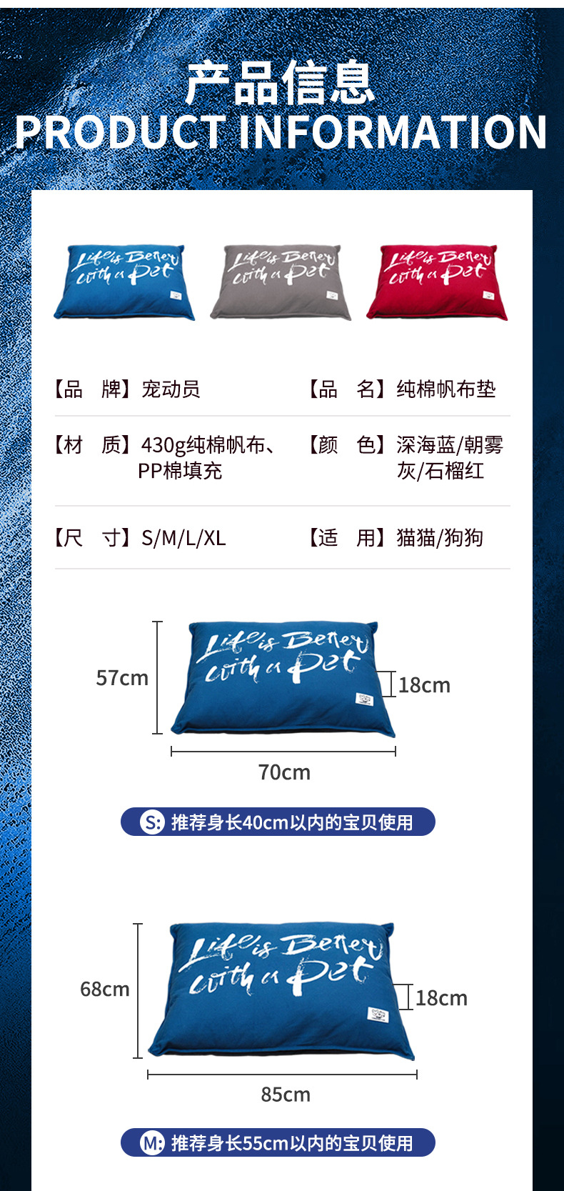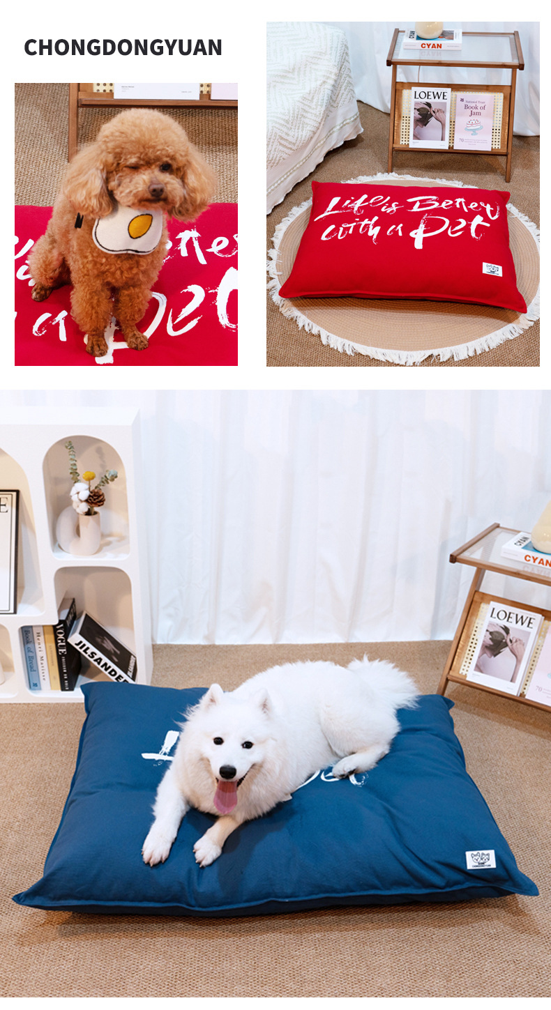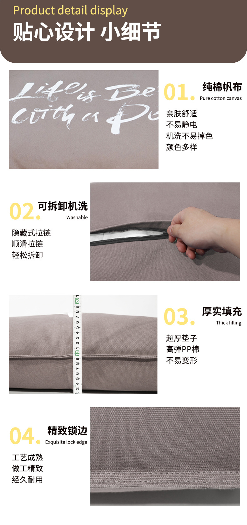 사계절용 애완견 침대, 대형견용 베개, 캔버스 베개, 강아지 침대, 긁힘 방지, 탈부착 및 세탁 가능, 색상 변하지 않음