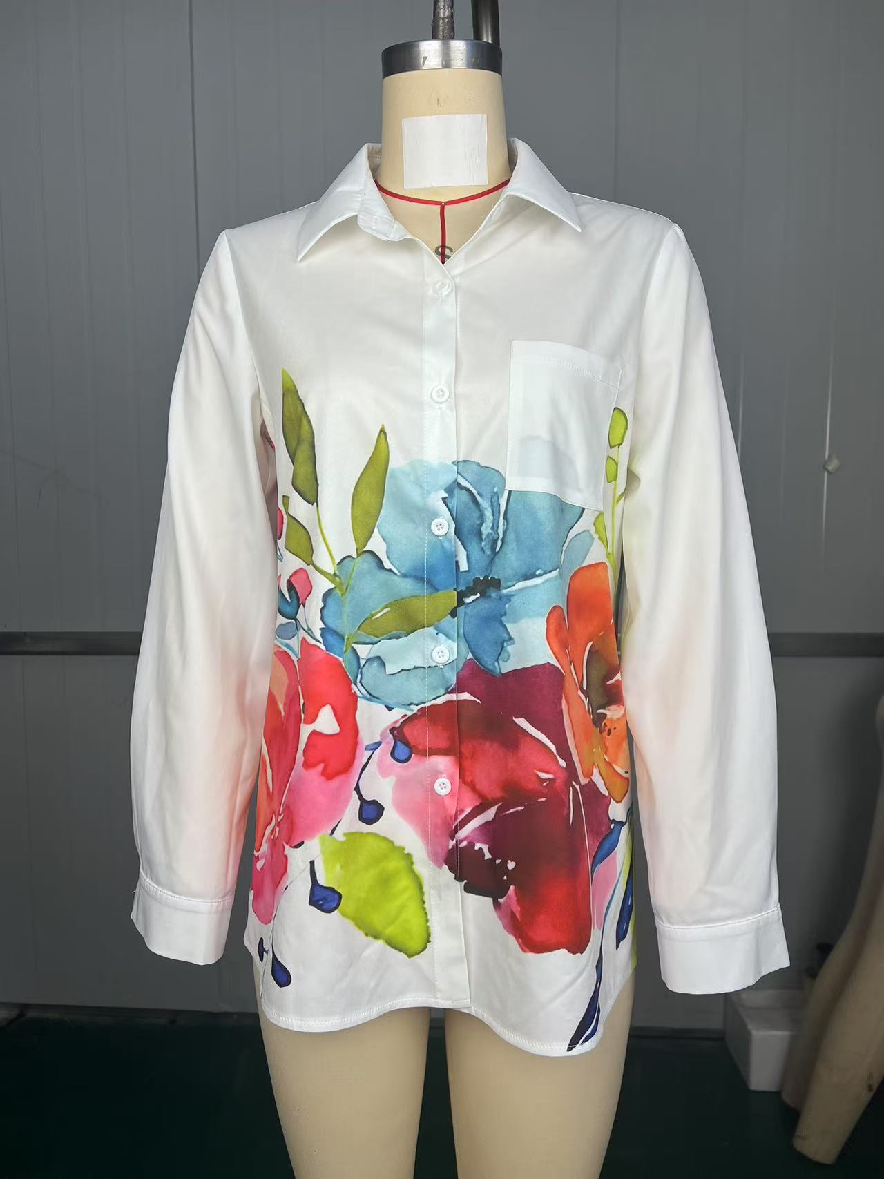 2025 국경 간 유럽과 미국 TEMU 프린트 캐주얼 루즈 셔츠 새로운 긴팔 여성 의류스토어 가기
