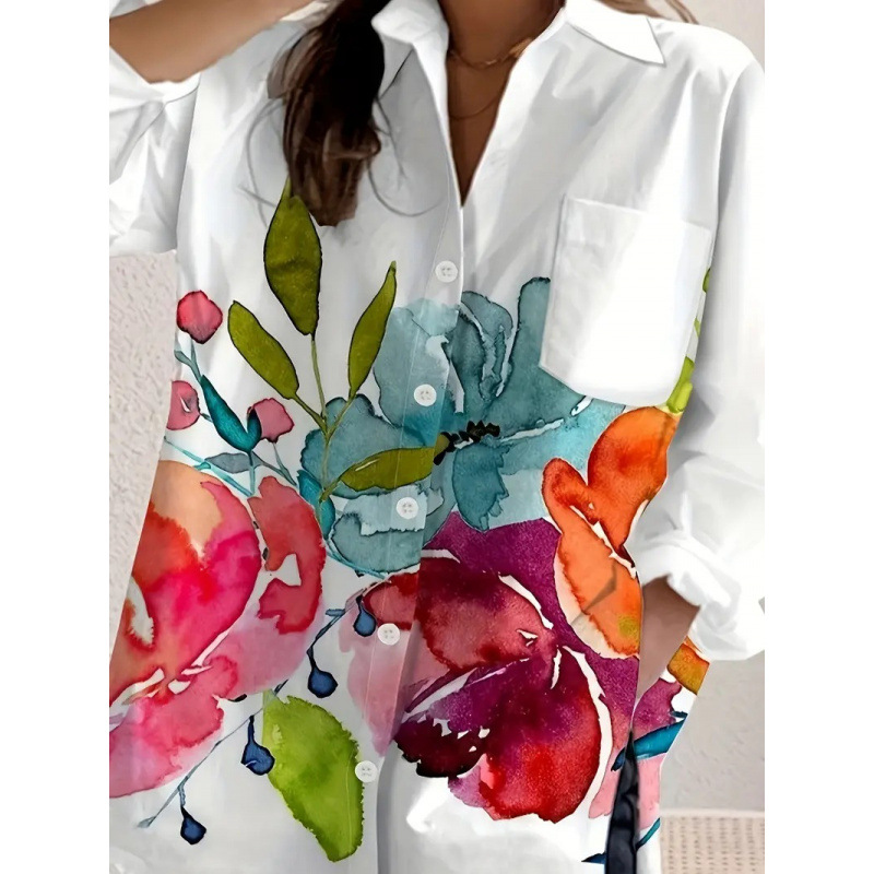 2025 국경 간 유럽과 미국 TEMU 프린트 캐주얼 루즈 셔츠 새로운 긴팔 여성 의류