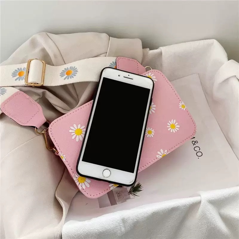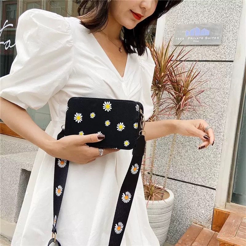 여성을위한 작은 신선한 가방 여름 새로운 한국어 버전 ins 패션 다목적 와이드 숄더 스트랩 작은 데이지 스퀘어 백 싱글 숄더 크로스 바디 백스토어 가기