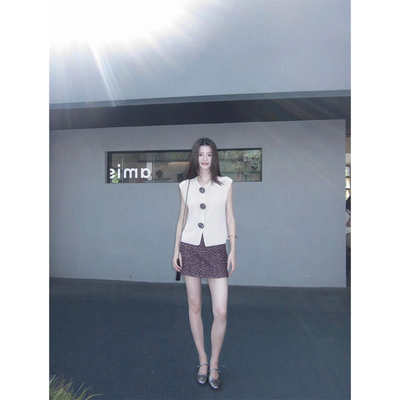 2025 새로운 스타일 Xiaoxiangfeng 중공업 다이아몬드 버튼 민소매 양복 조끼 양복 조끼 트위드 스커트 여성스토어 가기